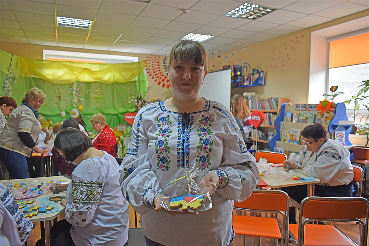 Приготувала імбирне печиво власноруч бібліотекар Ольга Захарчук. Символічно майстриня спекла смаколики у вигляді карти України із серцем у центрі.