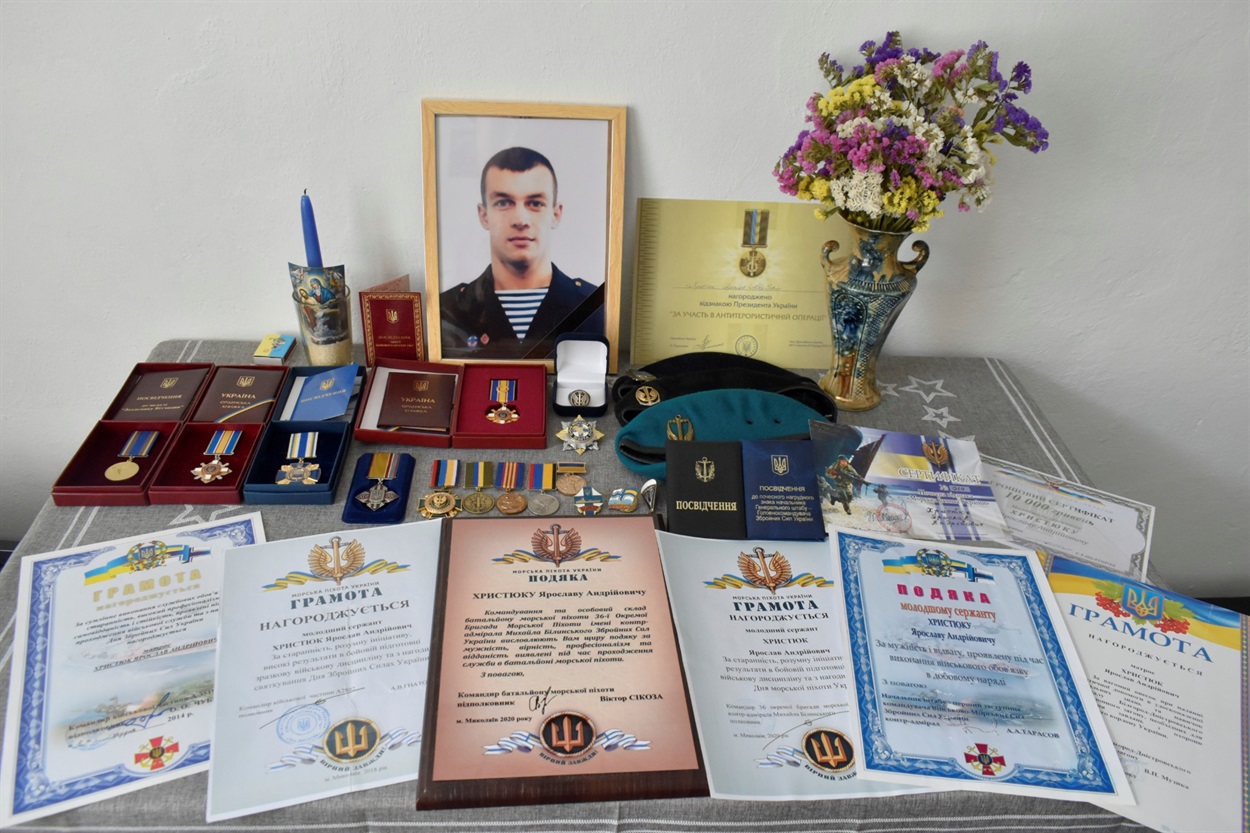 До цих пір родина Ярослава Христюка намагається знайти тіло загиблого 26-річного молодшого сержанта 36-ї окремої бригади морської піхоти ЗСУ Ярослава Христюка, який загинув від російського обстрілу в Маріуполі у березні цього року.
