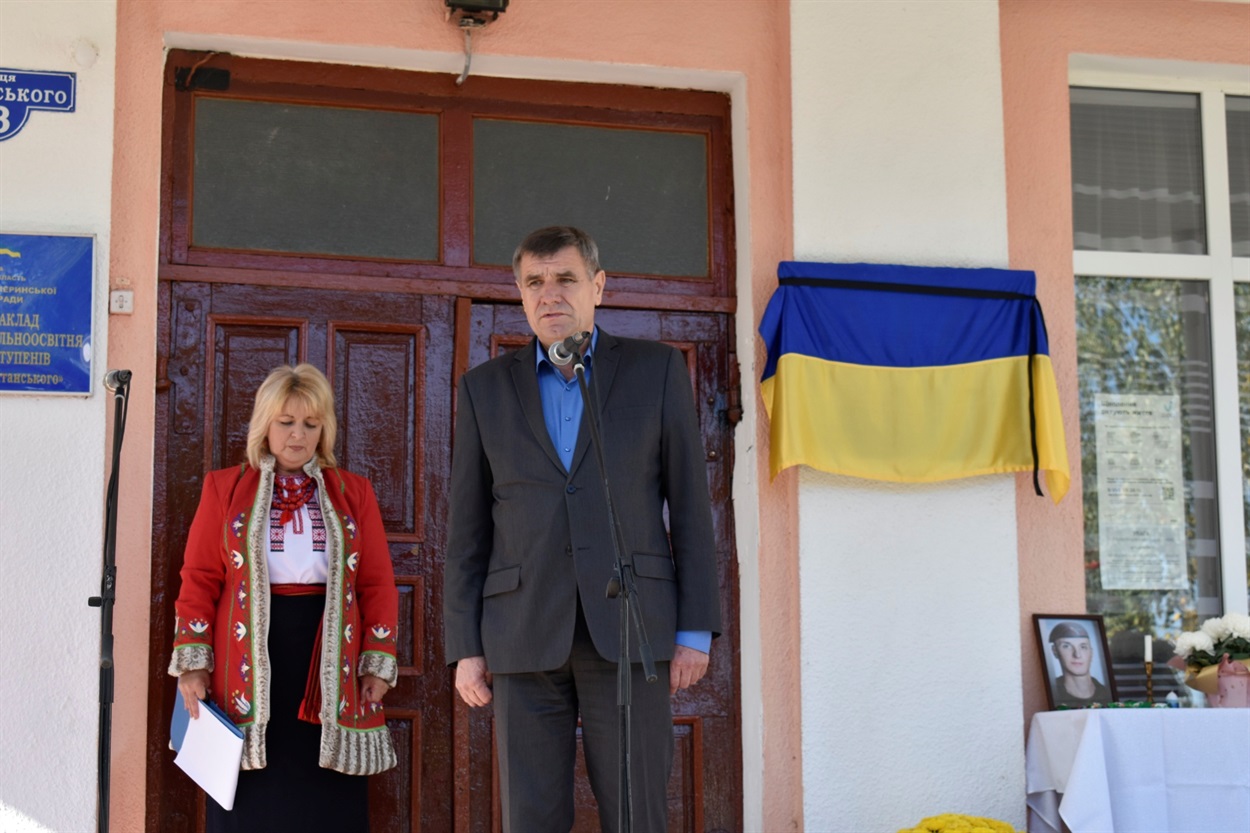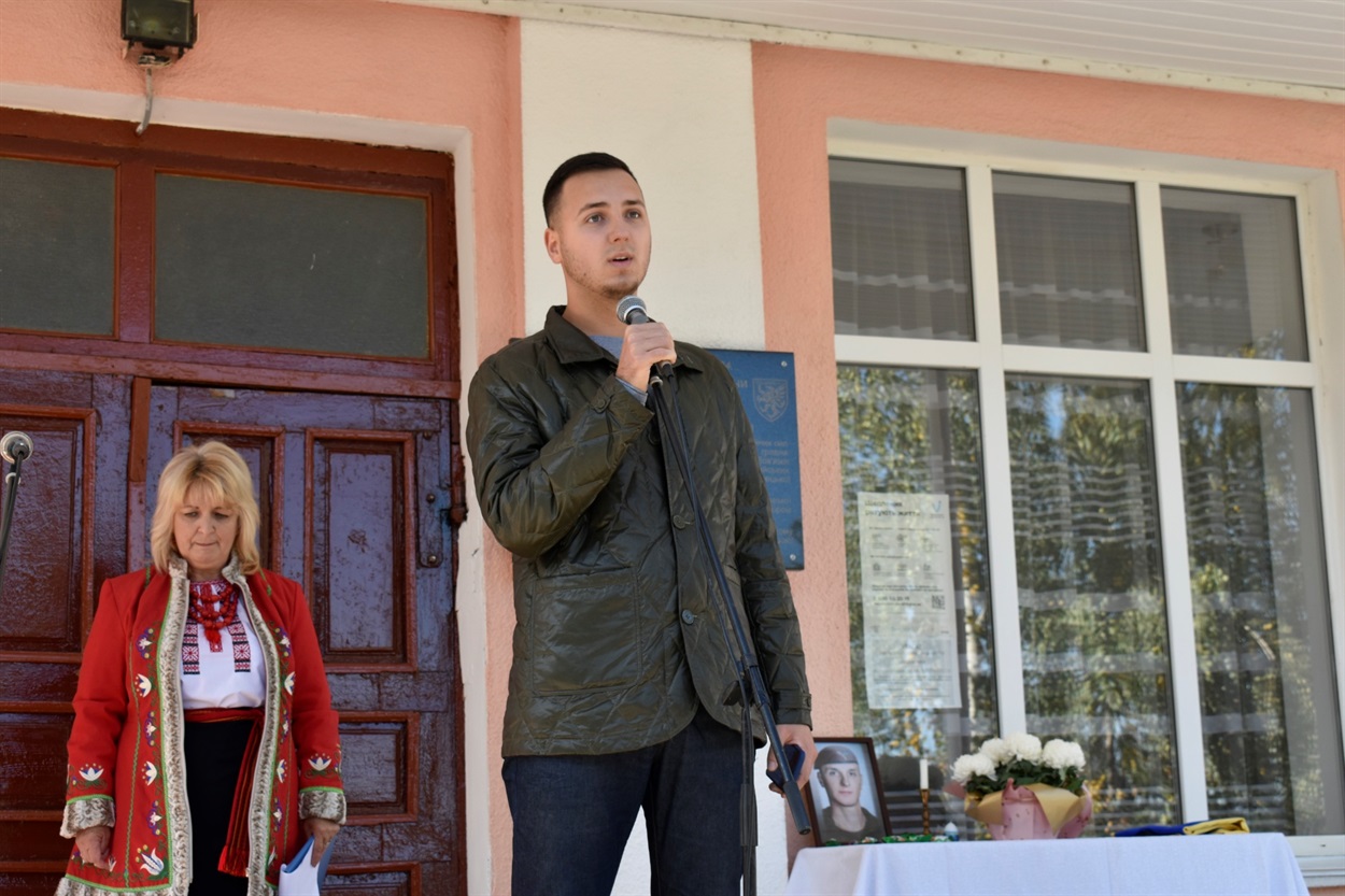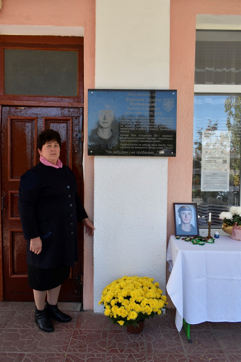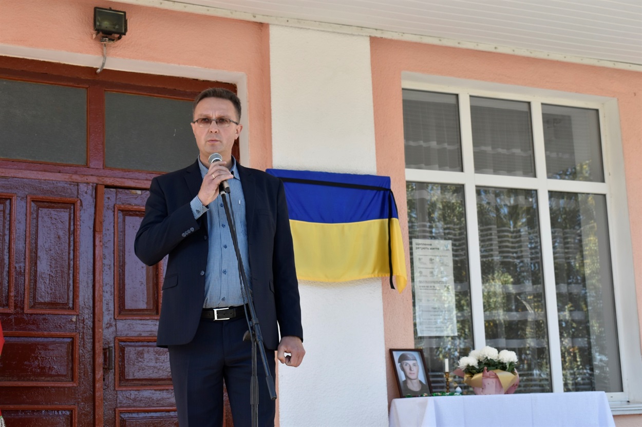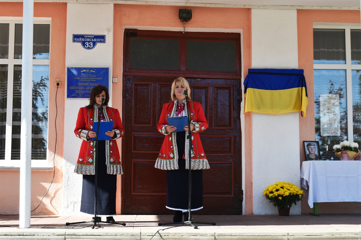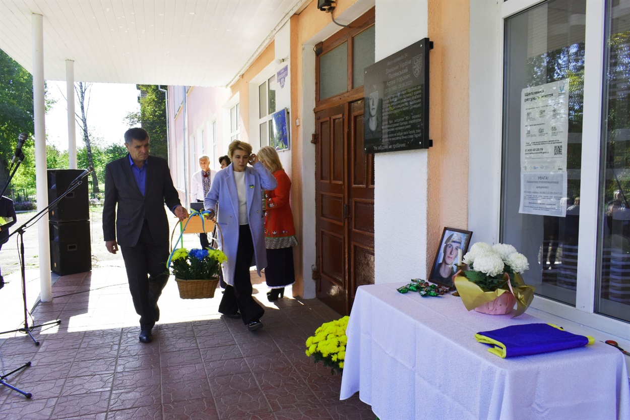 Почесну місію відкрити меморіальну дошку Герою України Артему Полянському надали директору Браїлівської школи імені Володимира Забаштанського Людмилі Жарук.
