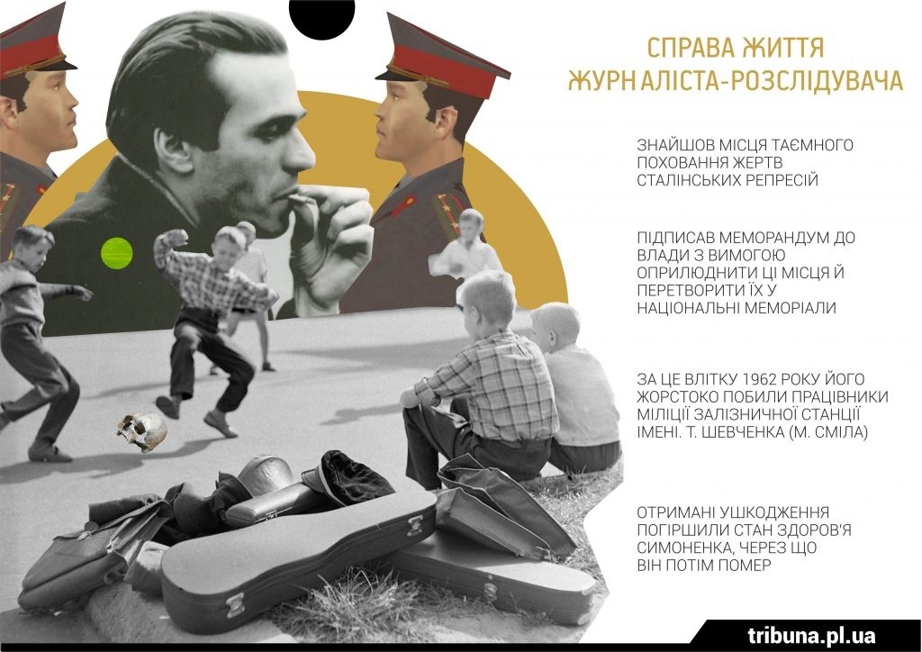 Величезне враження на Симоненка справив випадок, коли на галявині Биківнянського лісу він побачив хлопчаків, які грали у футбол. За м’яча їм слугував... череп із діркою в потилиці. Ще два черепи позначали лінію воріт... Про це згадував у своєму щоденнику Лесь Танюк, який з Аллою Горською та Симоненком теж приїхав до Биківні. Після цього Василь разом із іншими членами Клубу складає і надсилає до Київської міської ради Меморандум із вимогою оприлюднити місця масових поховань і перетворити їх у національні місця скорботи та пам’яті. Такого зухвальства система простити не змогла – за Симоненком встановили нагляд.