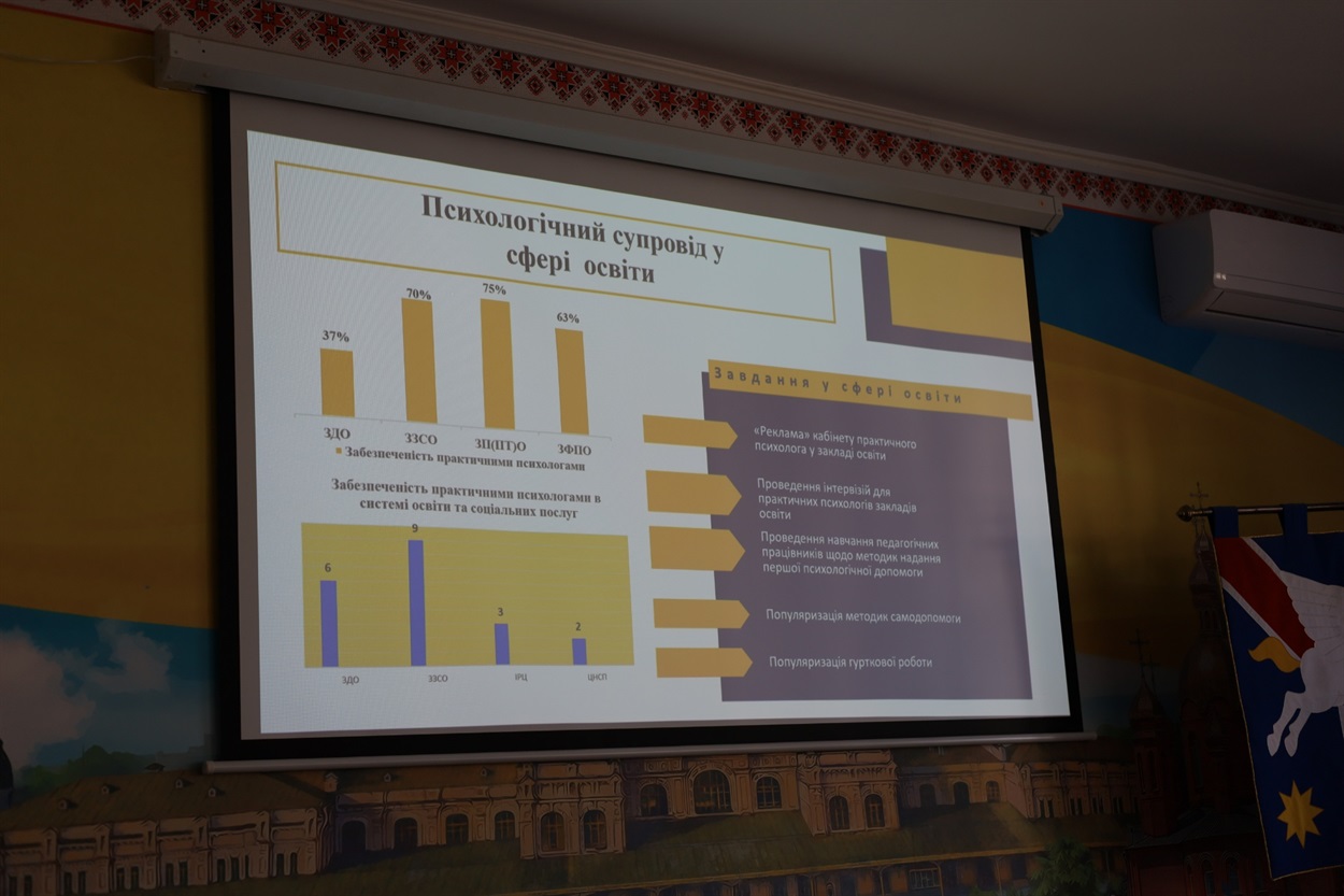 Ольга Геннадіївна акцентувала увагу присутніх на напрямках роботи у сфері ментального здоров’я і психологічної підтримки наших захисників, які повернулися з фронту.