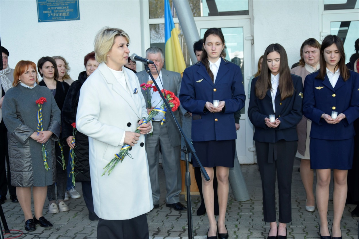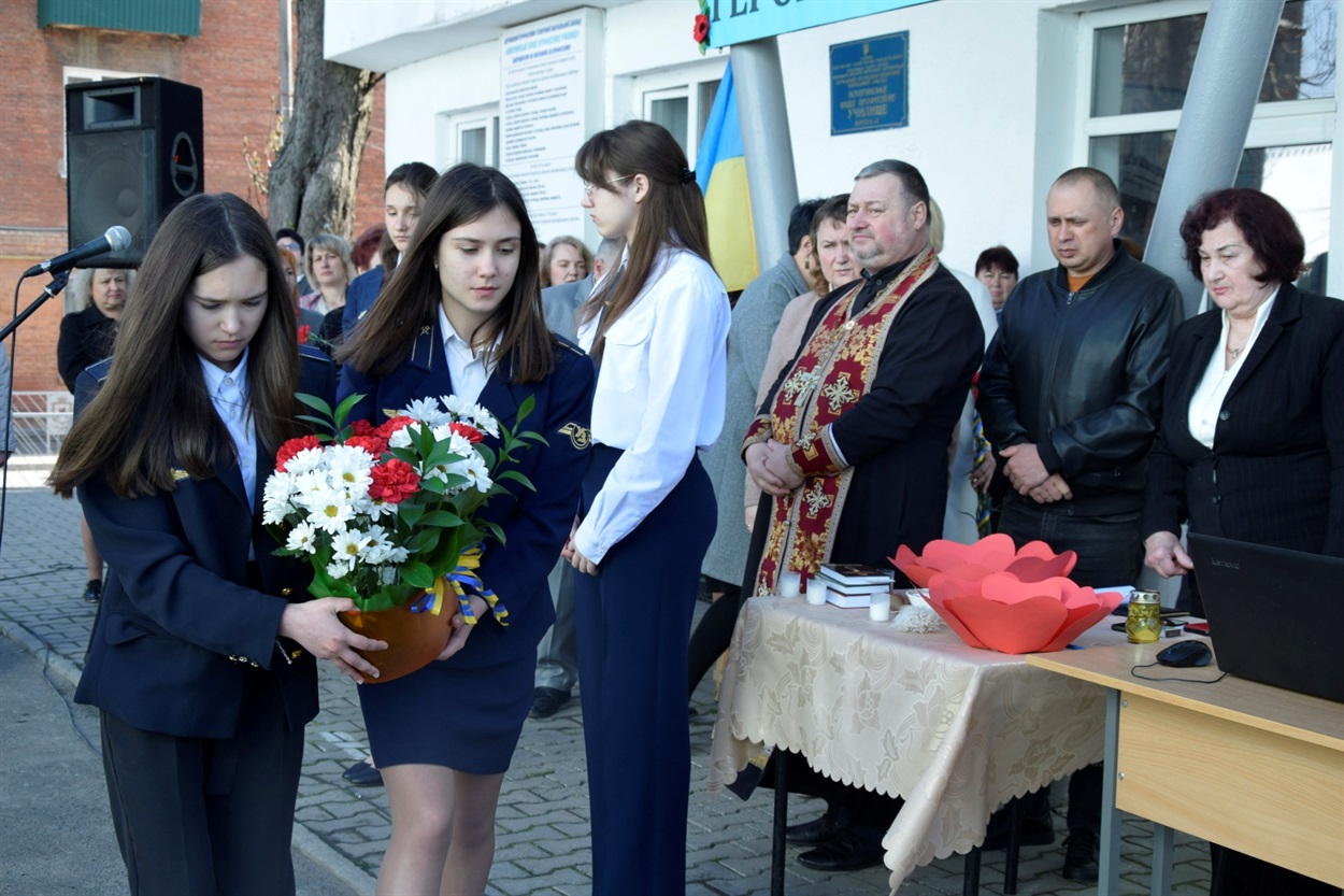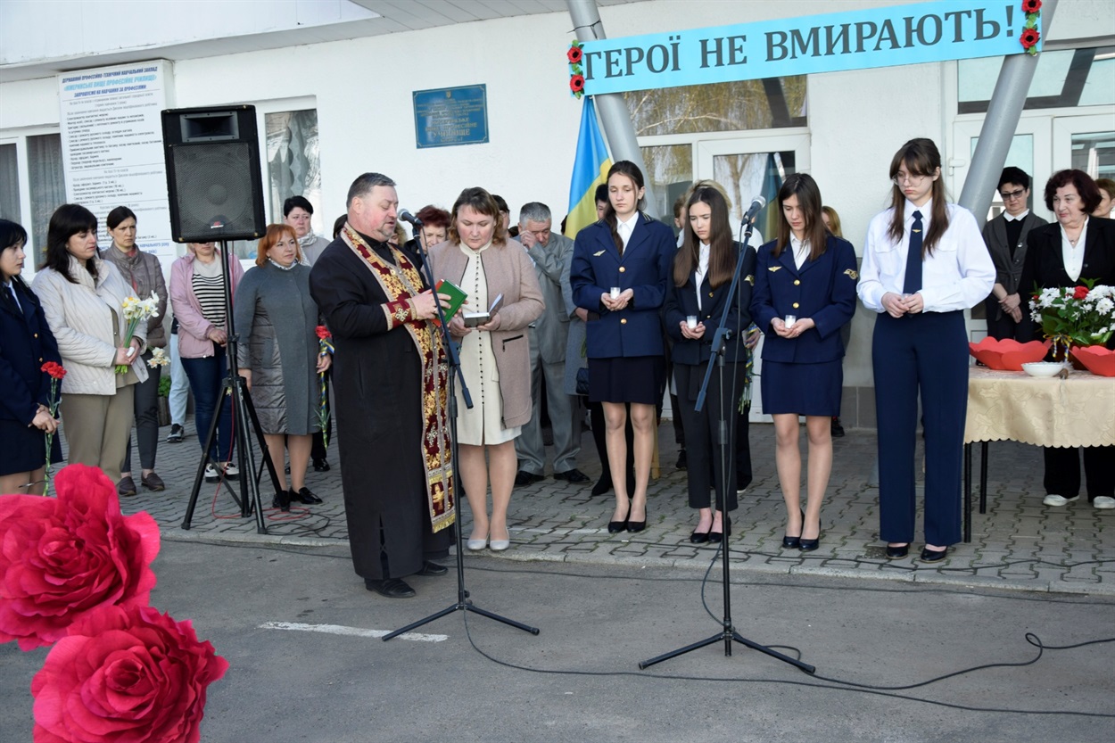 Студенти, викладачі, майстри, представники влади, родина і друзі схилили голови перед подвигом відважного випускника училища, який у боротьбі за нашу свободу і вільну Україну віддав стукіт свого серця.