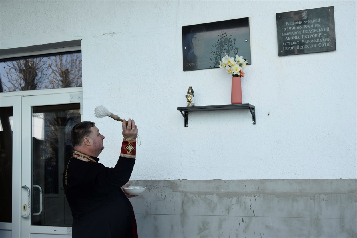 Заупокійну молитву та чин освячення меморіальної дошки здійснив священик ПЦУ, отець Мирон. Весняні квіти до портрету усміхненого Станіслава поклали студенти училища, педагоги та усі присутні на мітингу.
