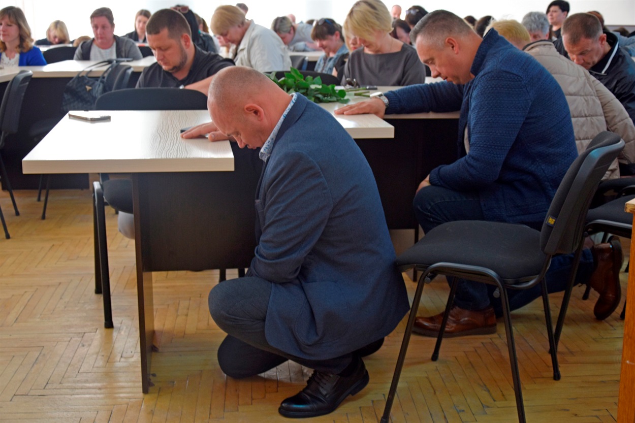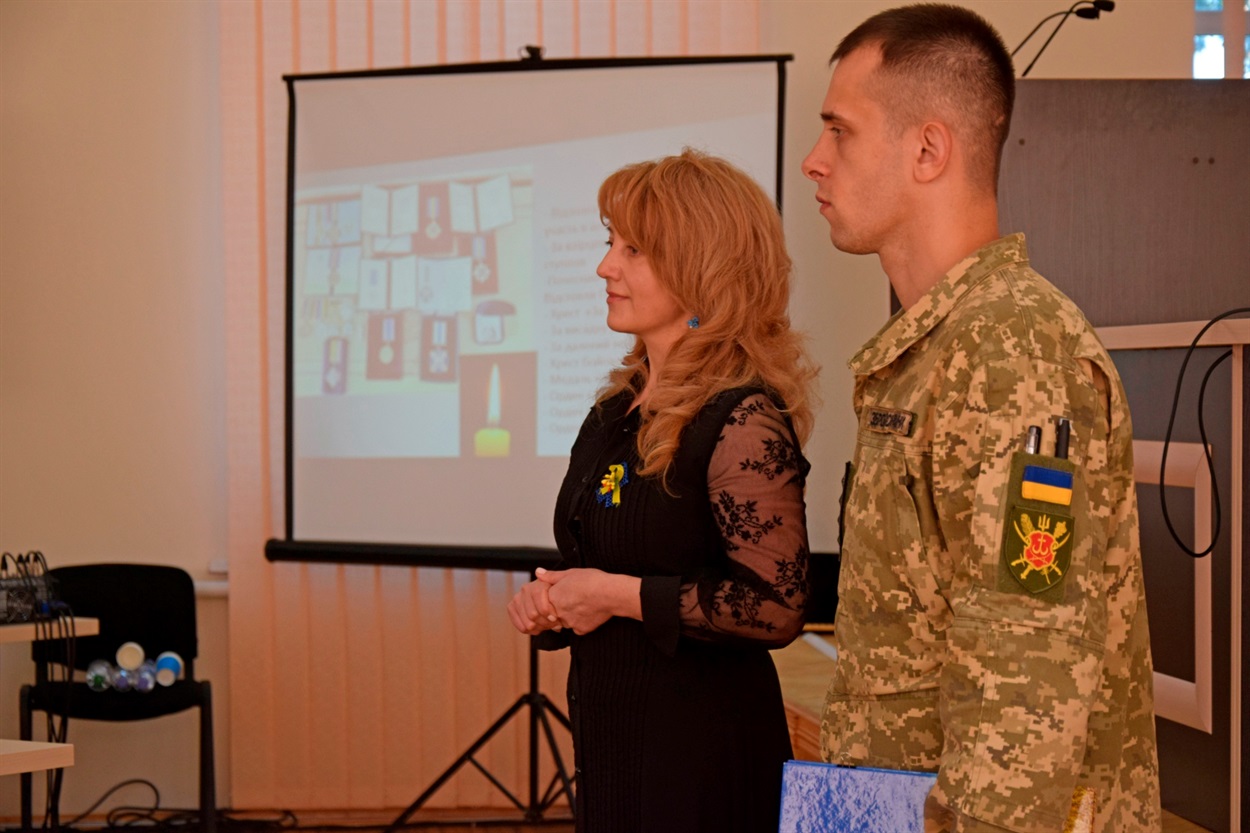 Юлія Іванівна та всі присутні в залі стали на коліна перед подвигом Героя Ярослава Христюка, його честю і відвагою!