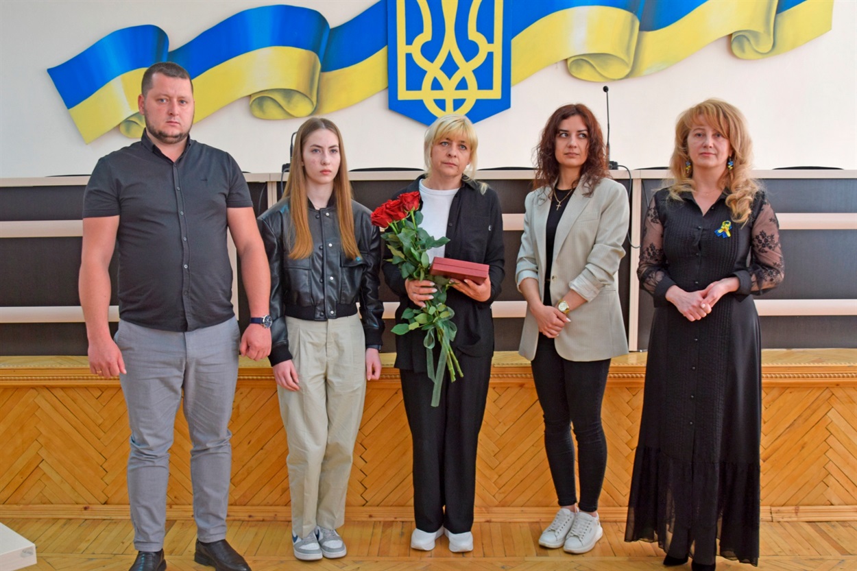 Державну нагороду матері вручила начальник Жмеринської районної військової адміністрації, депутат обласної ради Інна Цимбал.