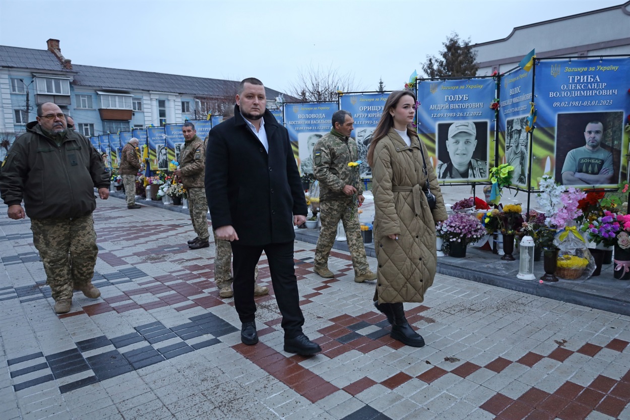 Секретар міської ради Вадим Кожуховський спільно з військовослужбовцями, представниками органу місцевого самоврядування та учнівською молоддю поклали корзини із живими квітами до портретів Героїв.