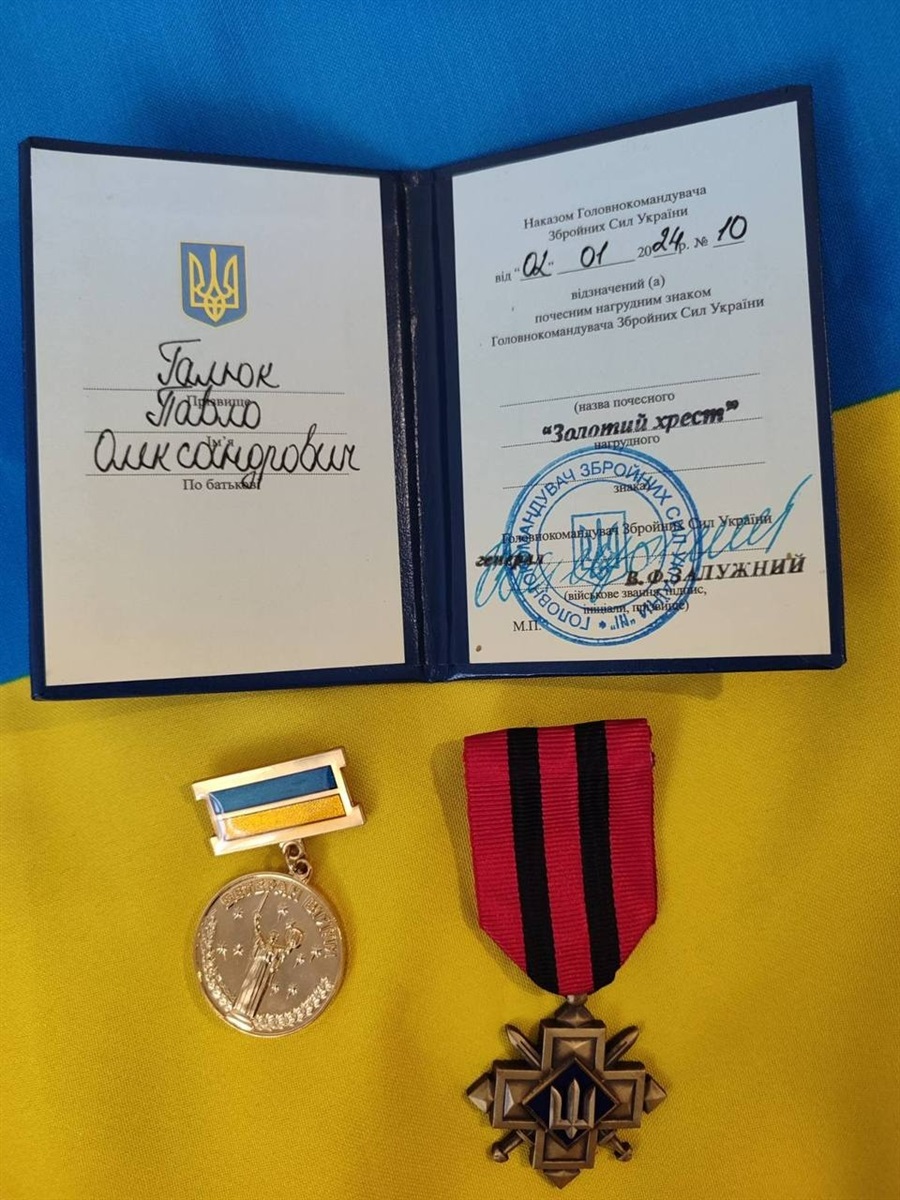 Павло став на захист держави з перших днів війни – з 4 березня 2022 року, хоробро йшов у кожен бій і мав велику повагу серед побратимів. За відвагу, героїзм та мужність Павло нагороджений почесним нагрудним знаком Головнокомандувача ЗСУ «Золотий хрест» та медаллю ветерана війни за професіоналізм та відданість.