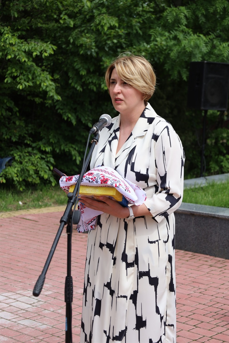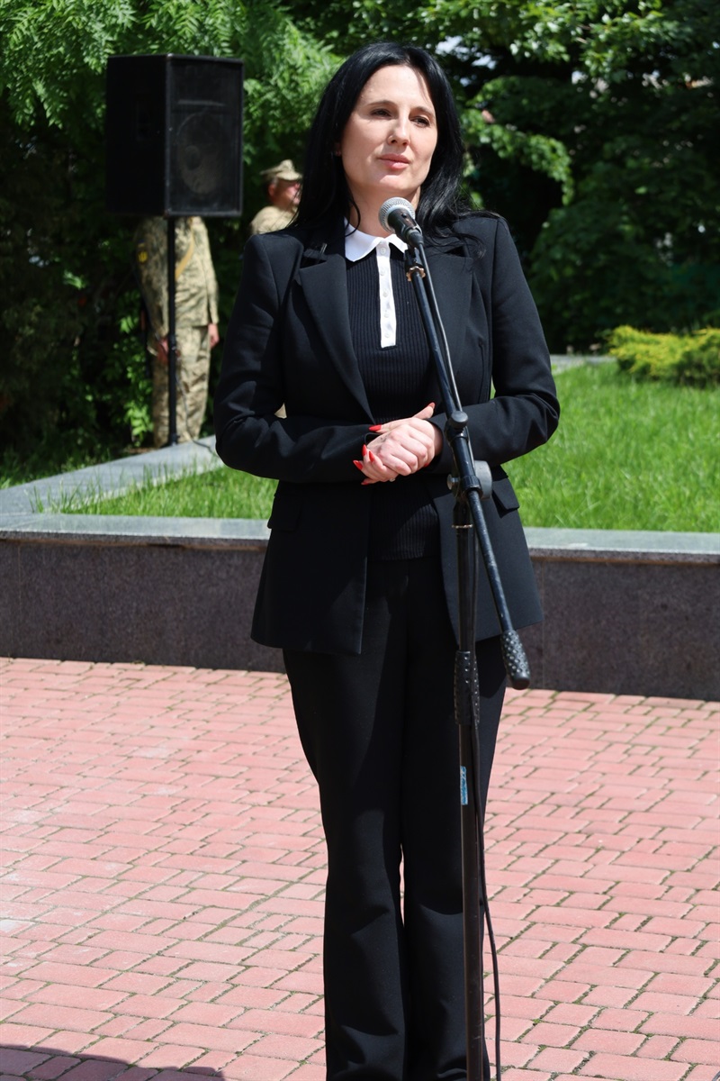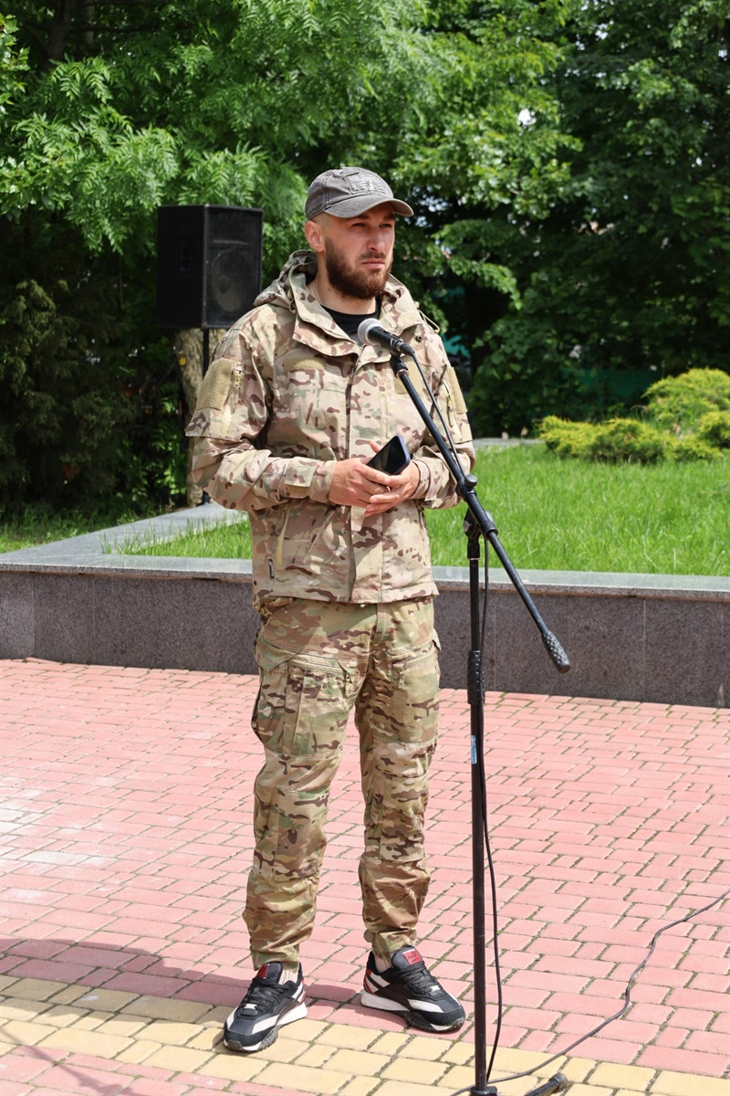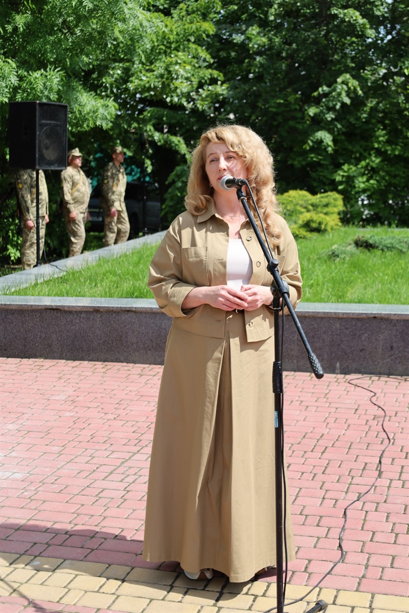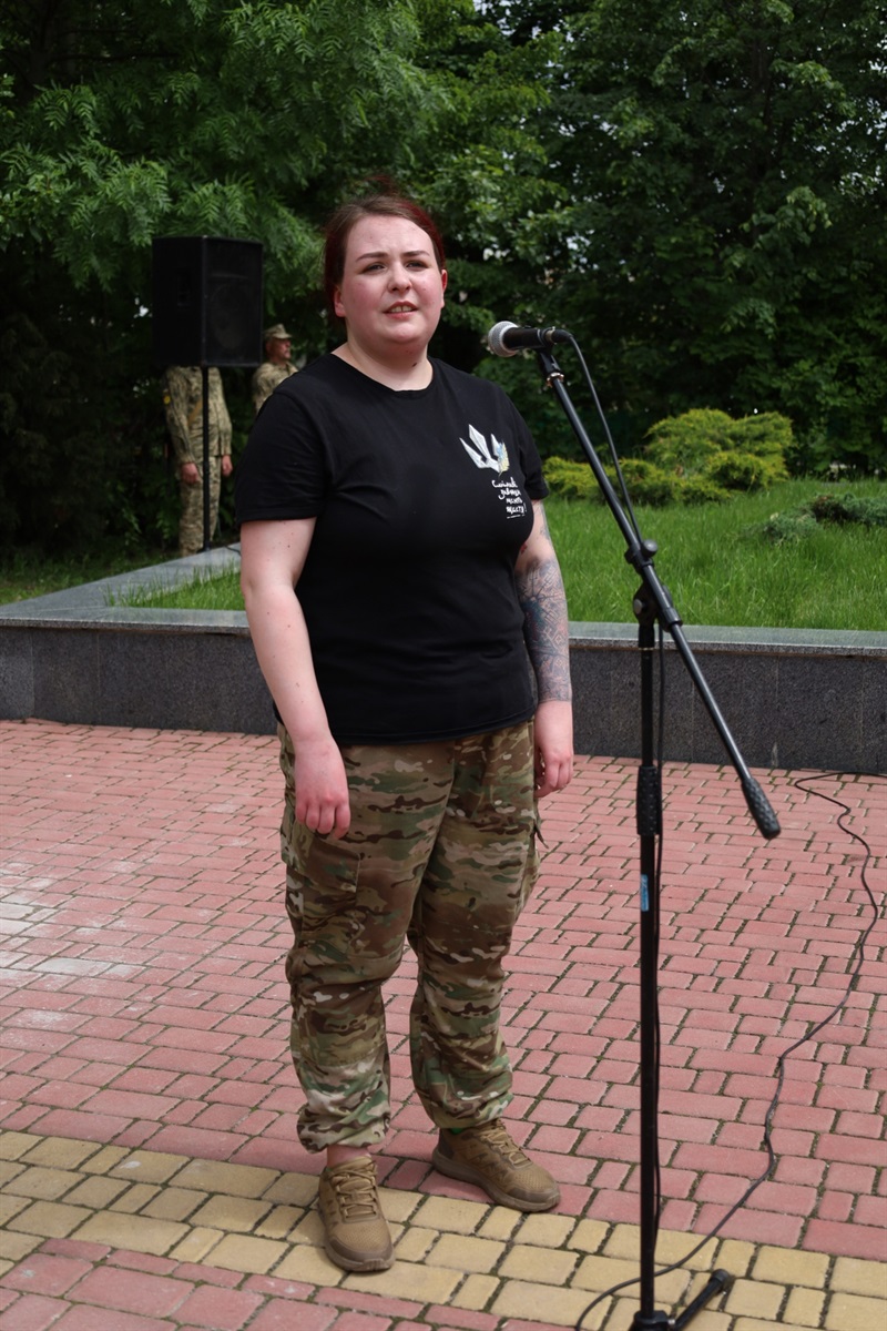 Директорка музею імені Володимира Забаштанського Надія Слободенюк у ліричному виступі розповіла про життєвий шлях молодого бійця, який заплатив занадто високу ціну за нашу свободу.