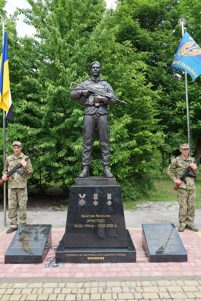 Пам’ятник виготовили за сприяння благодійного фонду «Сталеві». Право відкрити пам’ятник надали матері Юлії Христюк та Герою України, командиру відділення Сергію Волинському.