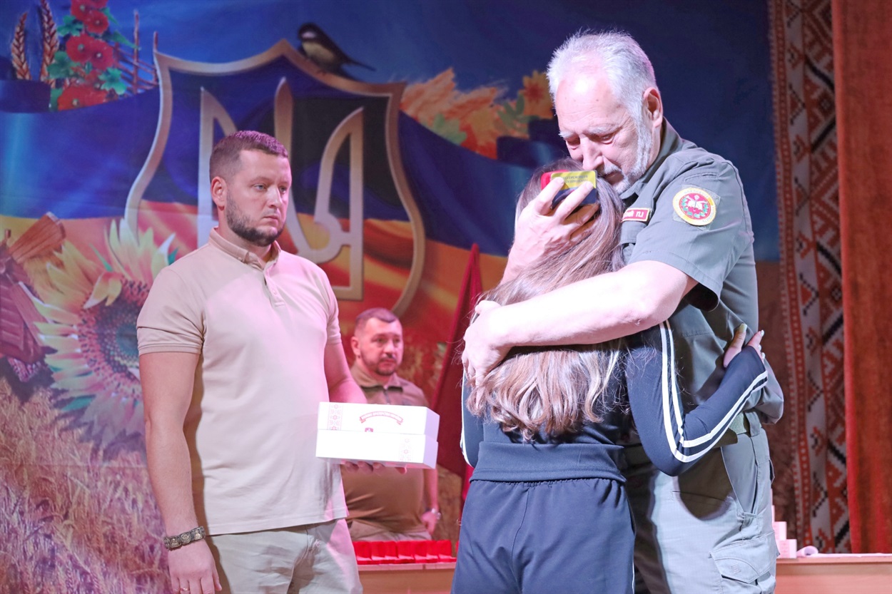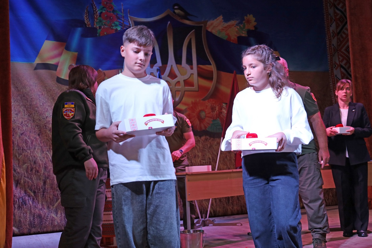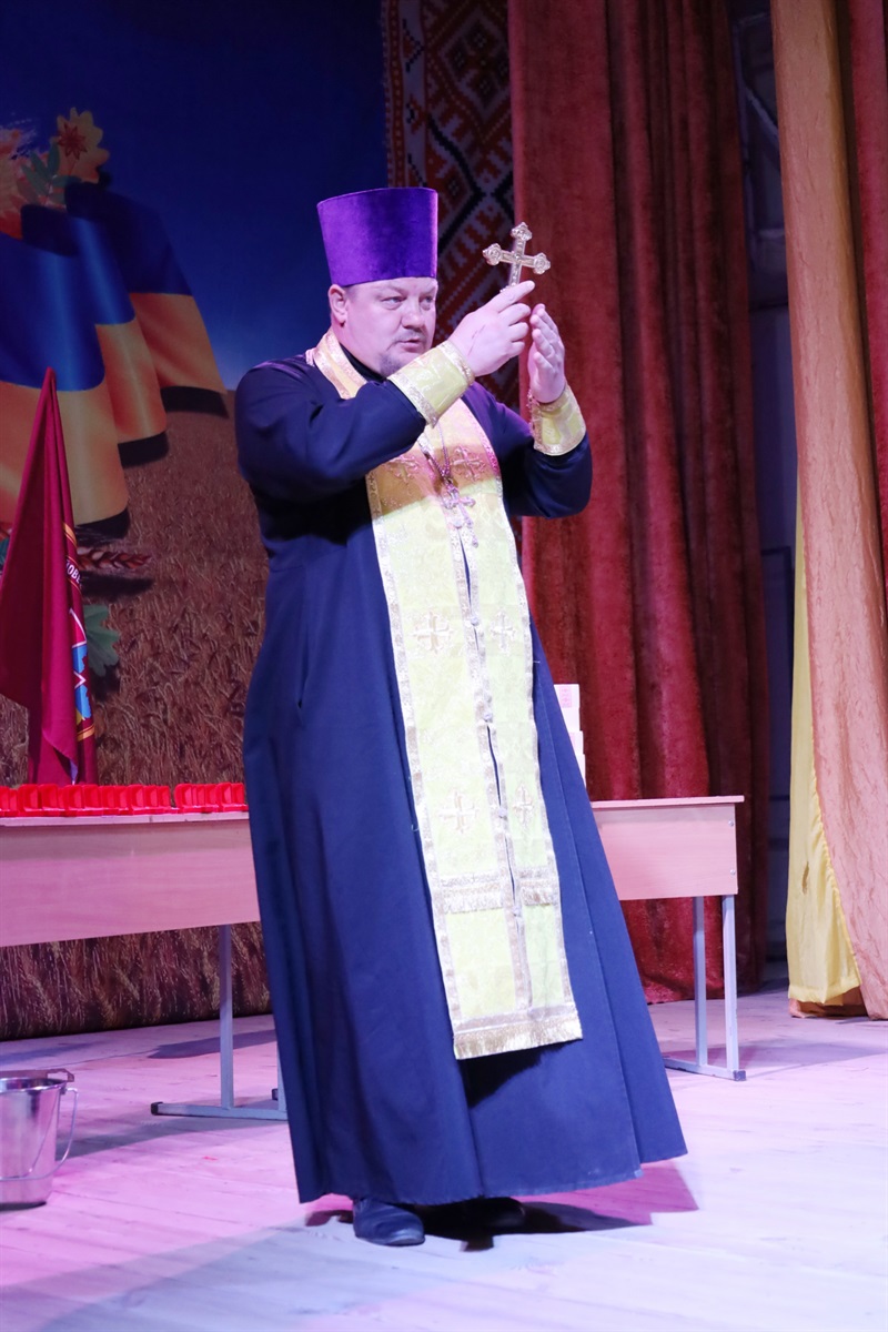Перед врученням священник ПЦУ Василь Руденко звершив молитву й освятив кулони. Він закликав дітей і дорослих завжди плекати любов до України, берегти пам’ять про Героїв і своїми добрими вчинками продовжувати їхню справу.