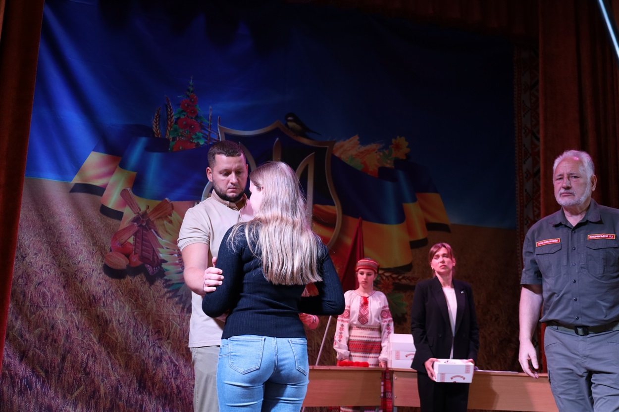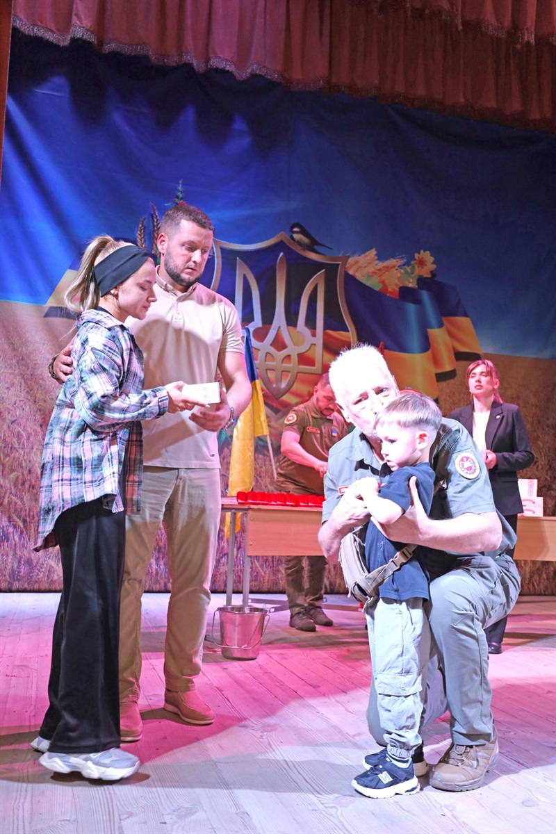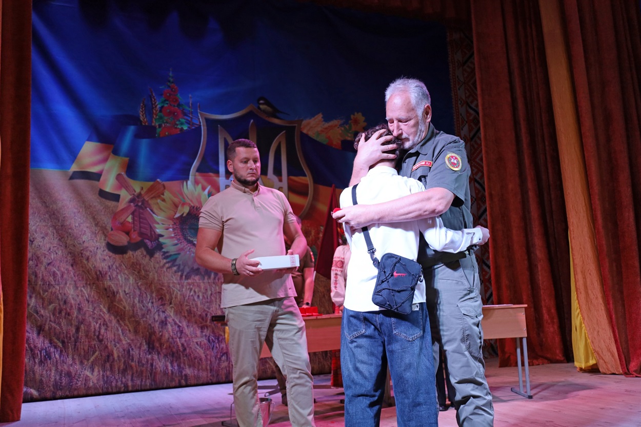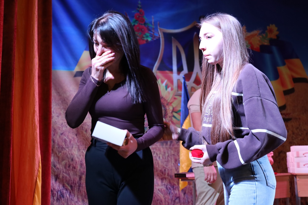 Перед врученням священник ПЦУ Василь Руденко звершив молитву й освятив кулони. Він закликав дітей і дорослих завжди плекати любов до України, берегти пам’ять про Героїв і своїми добрими вчинками продовжувати їхню справу.