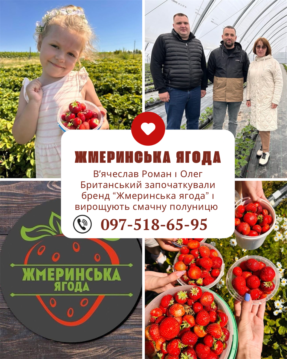 «Жмеринська ягода» – підприємці Олег В’ячеслав Роман та Олег Британський вирощують більше 10 сортів полуниці, підтримують захисників і працевлаштували близько 20 людей. Їхню полуницю смакують в різних куточках України.