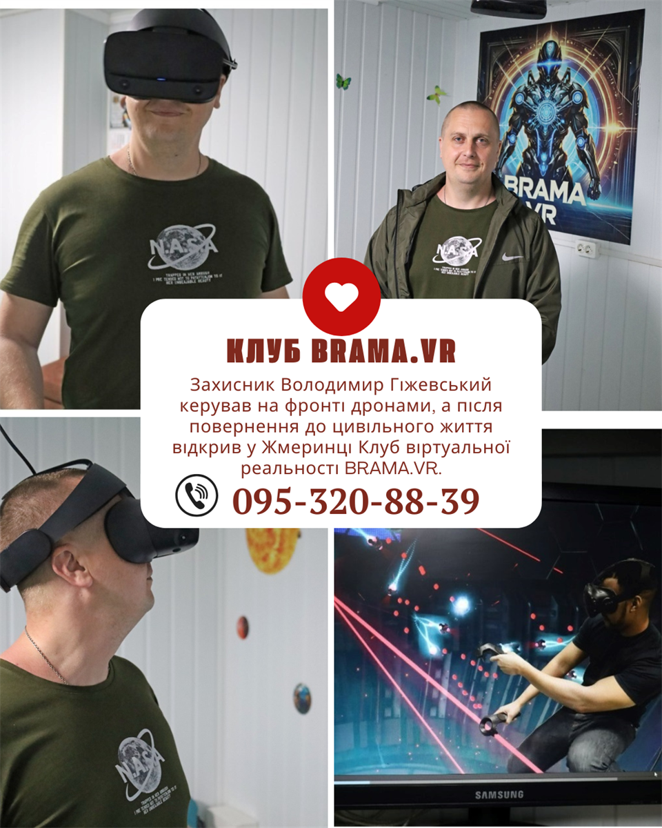 «Клуб віртуальної реальності» – захисник Володимир Гіжевський на фронті керував дронами, а після поранення повернувся до цивільного життя, і відкрив Клуб віртуальної реальності «BRAMA.VR», де кожен бажаючий за допомогою спеціального технічного обладнання має змогу поринути у фантастичний світ кіно, гри чи казки.