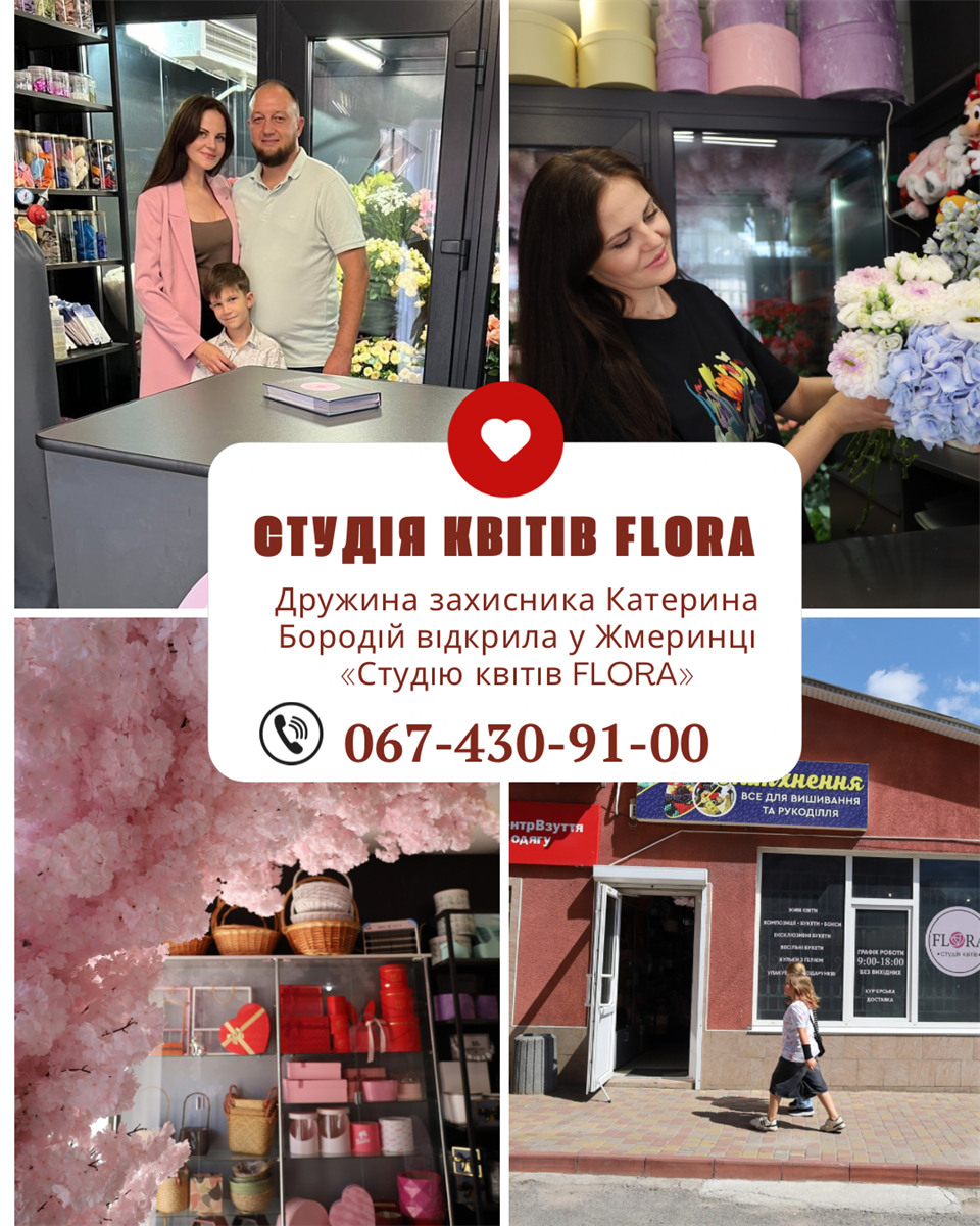 «Студія квітів FLORA» – саме військові надихнули Катерину Бородій відкрити студію квітів у Жмеринці, коли просити доставити щось особливе для дружин і матусь, будучи на передовій. Дружина захисника виграла грант на власну справу і відкрила студію квітів.