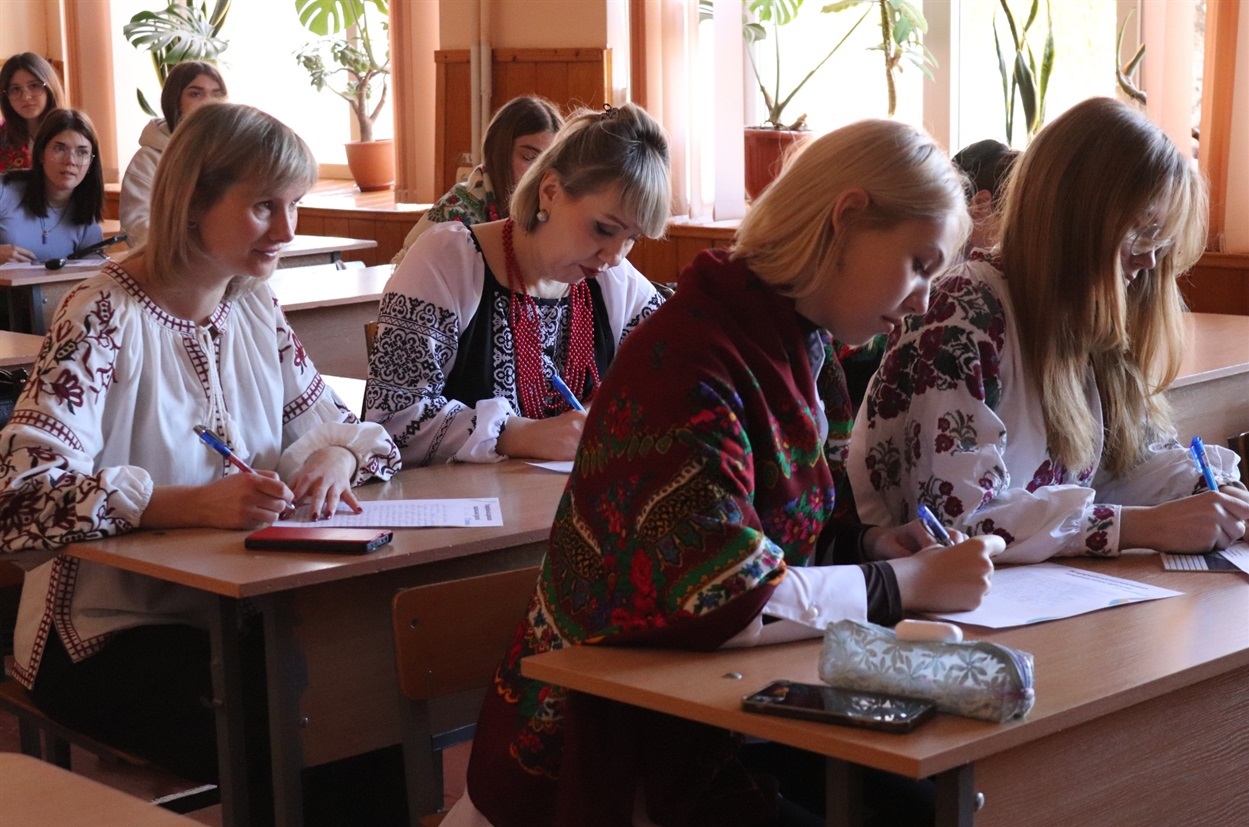 Символічно й урочисто проходило написання диктанту і у Жмеринському вищому професійному училищі. Викладачі та студенти підійшли творчо: багато хто вдягнув вишиванки, українські хустки тощо.