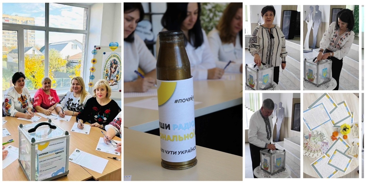 У ліцеях та закладах дошкільної освіти Жмеринської громади також були встановлені скриньки для збору коштів на підтримку ЗСУ. Тож, учасники радіодиктанту не лише писали слова єдності , а й охоче донатили.
