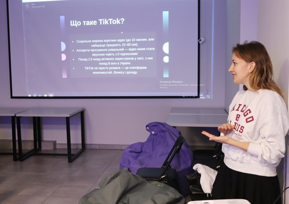 Як налаштувати власний акаунт, яких правил ТікТоку потрібно дотримуватися, як вести «стріми» та що таке «ТікТок-батли» спікерка розповіла учасникам заходу.