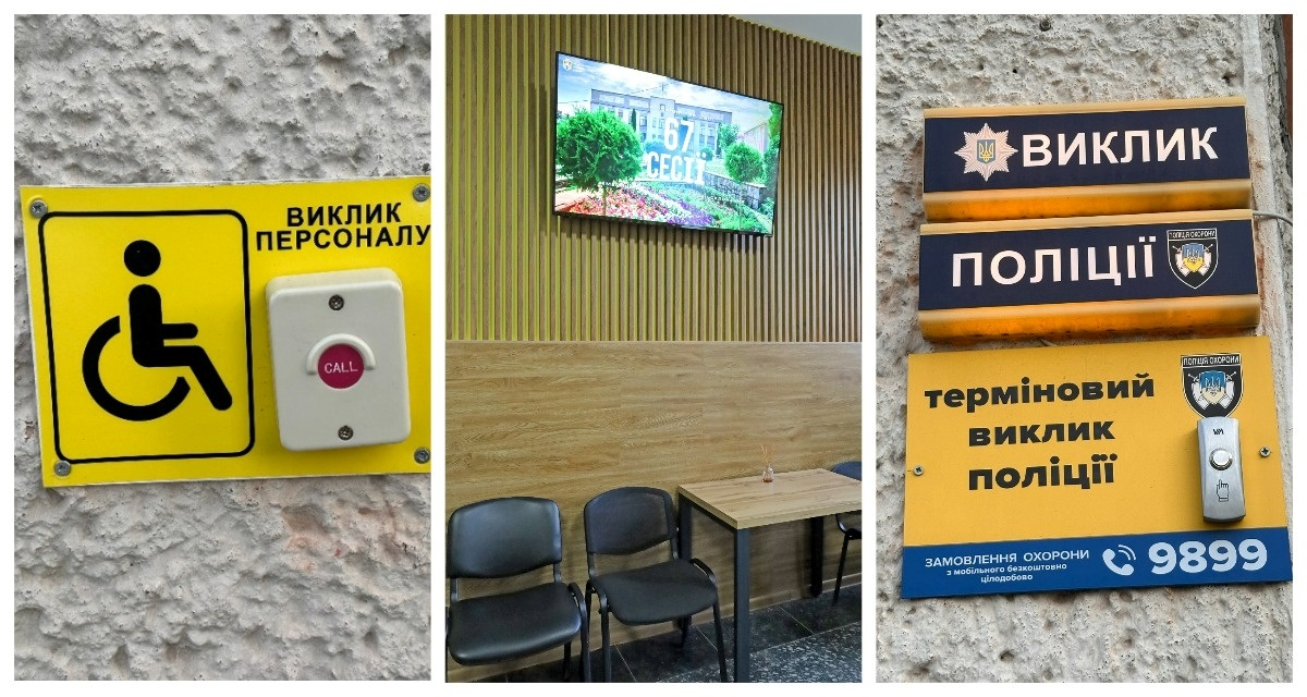Для осіб на кріслах колісних встановлено кнопку виклику персоналу, а також кнопку виклику поліції.