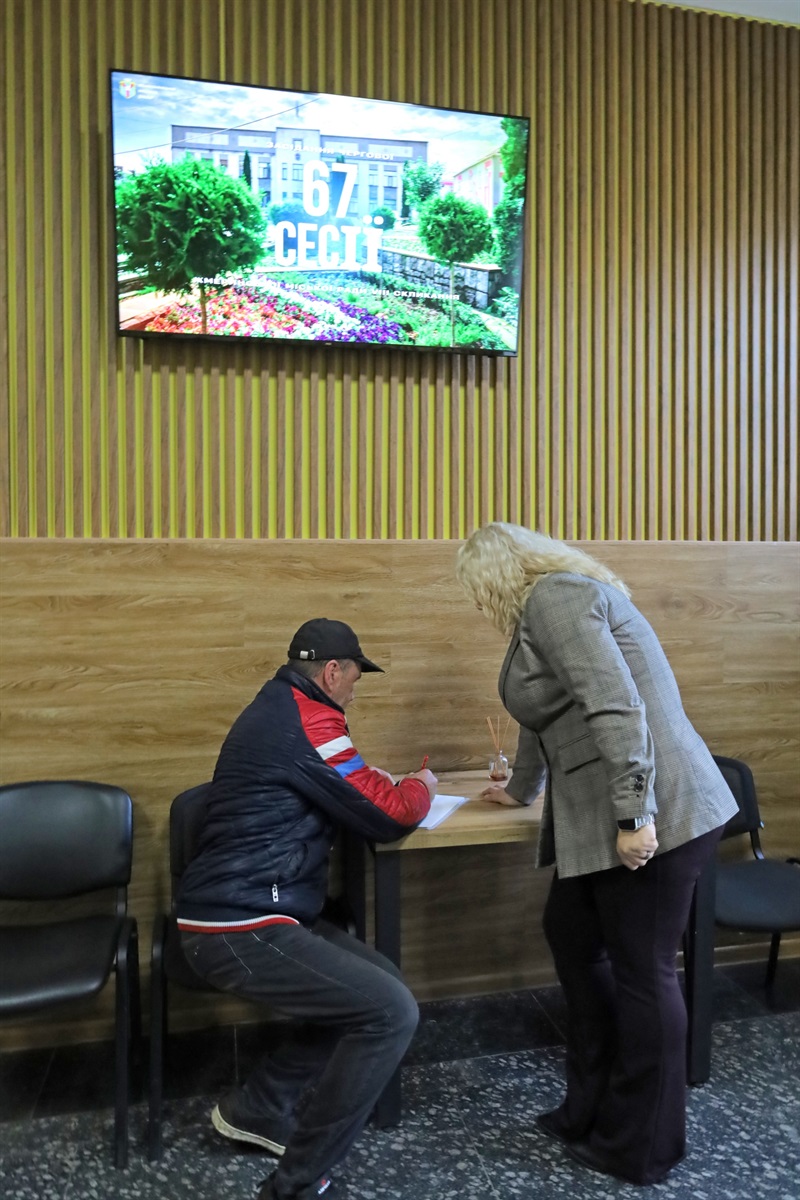 У фойє передбачено місця, де можна написати заяви на отримання різних видів допомог.
