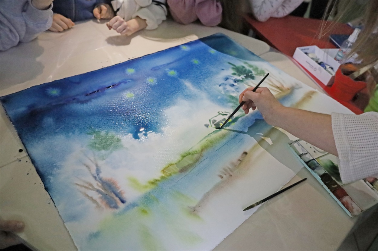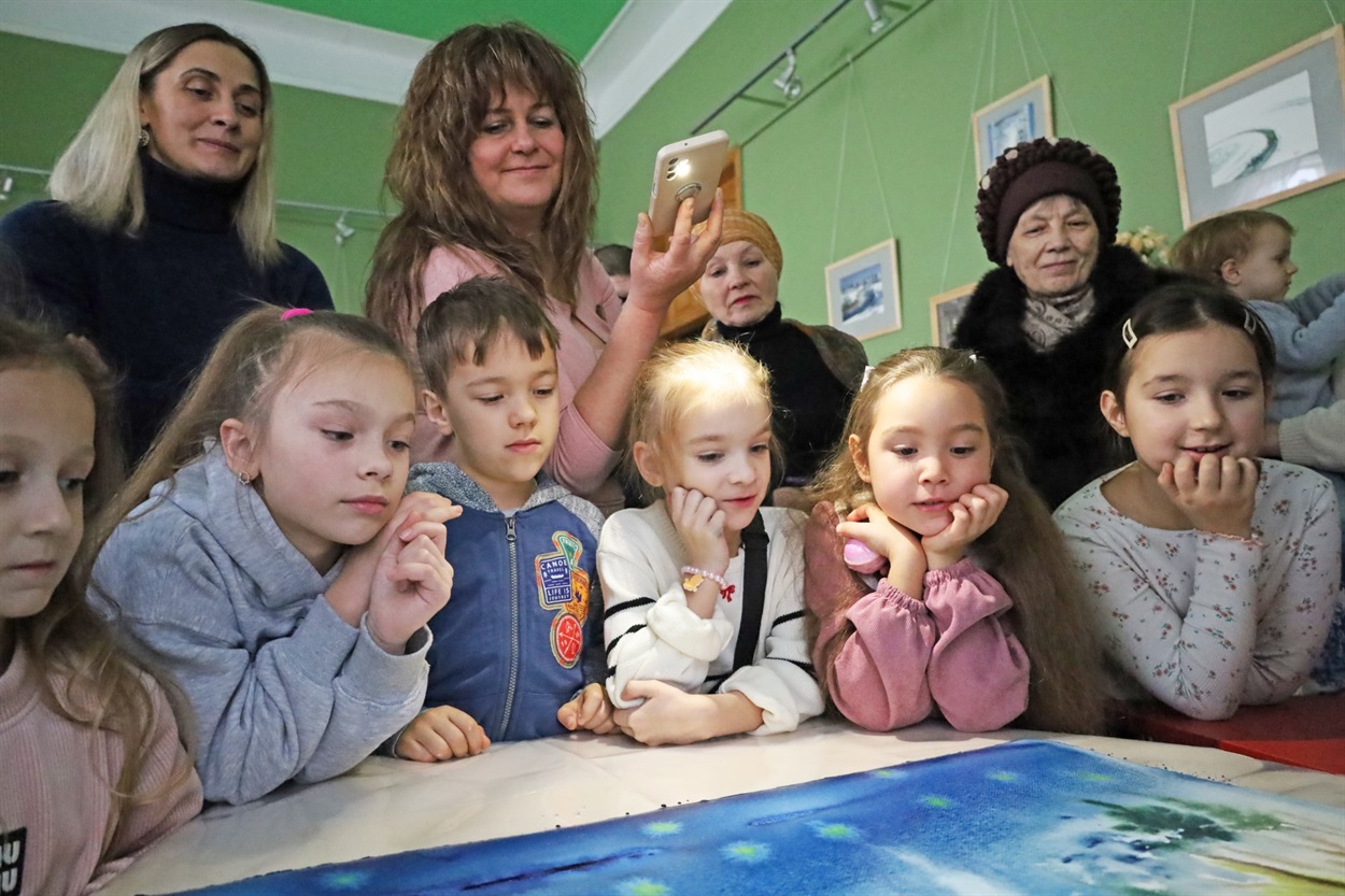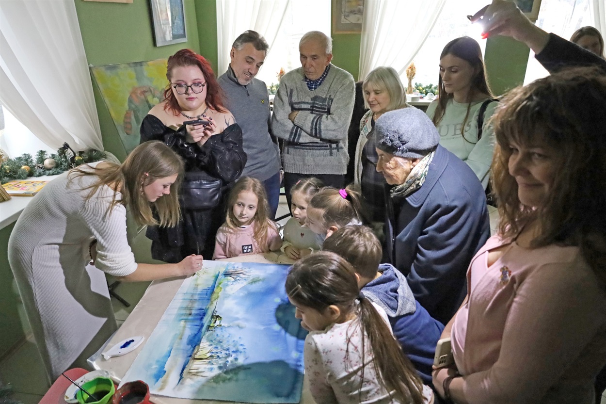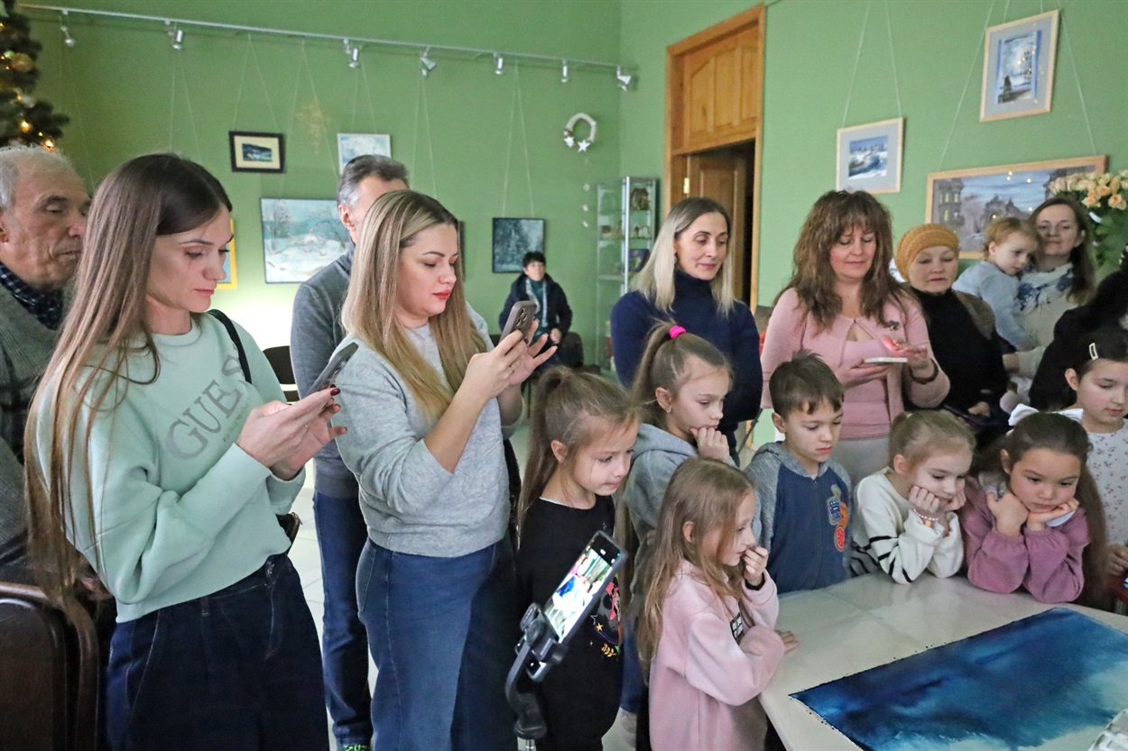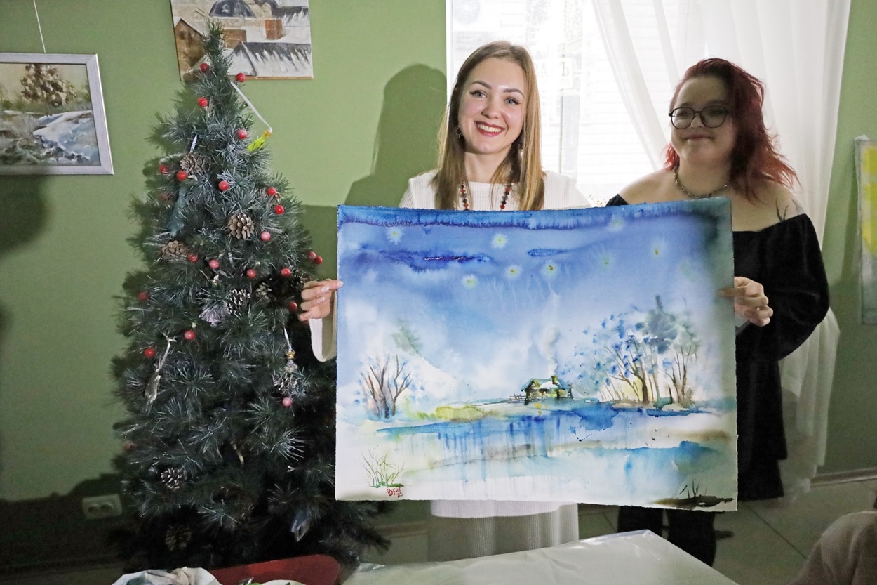 Відкриття виставки цього року відбулося у незвичному форматі: всі присутні стали учасниками творчої майстерні. Просто на очах гостей, за лічену годину, на білосніжному полотні народився неймовірний зимовий краєвид зі зоряним небом у синьо-жовтій акварельній палітрі. Під мелодію фортепіано в залі панувала особлива – тиха, світла й дуже українська – зимова магія.
