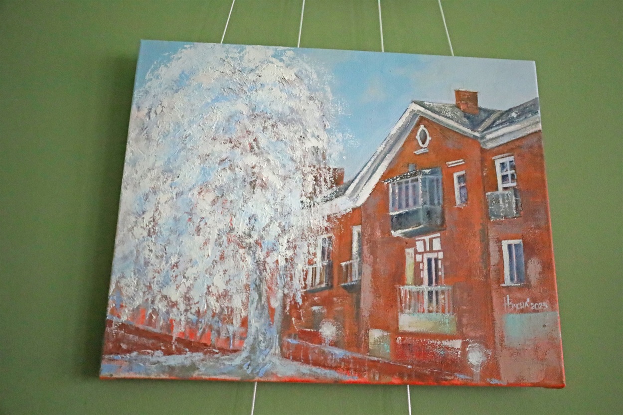 Серед експонатів є і особлива для авторки робота – унікальна картина «Калина». Її сюжет пов’язаний із родинною історією: прапрадід отримав землю, де саме й росла та калина. «Я зберегла цю пам’ять у фарбах», – розповіла пані Наталя. У виставці також представлено засніжений жмеринський вокзал, костел, одеські вулички та лісові мотиви.