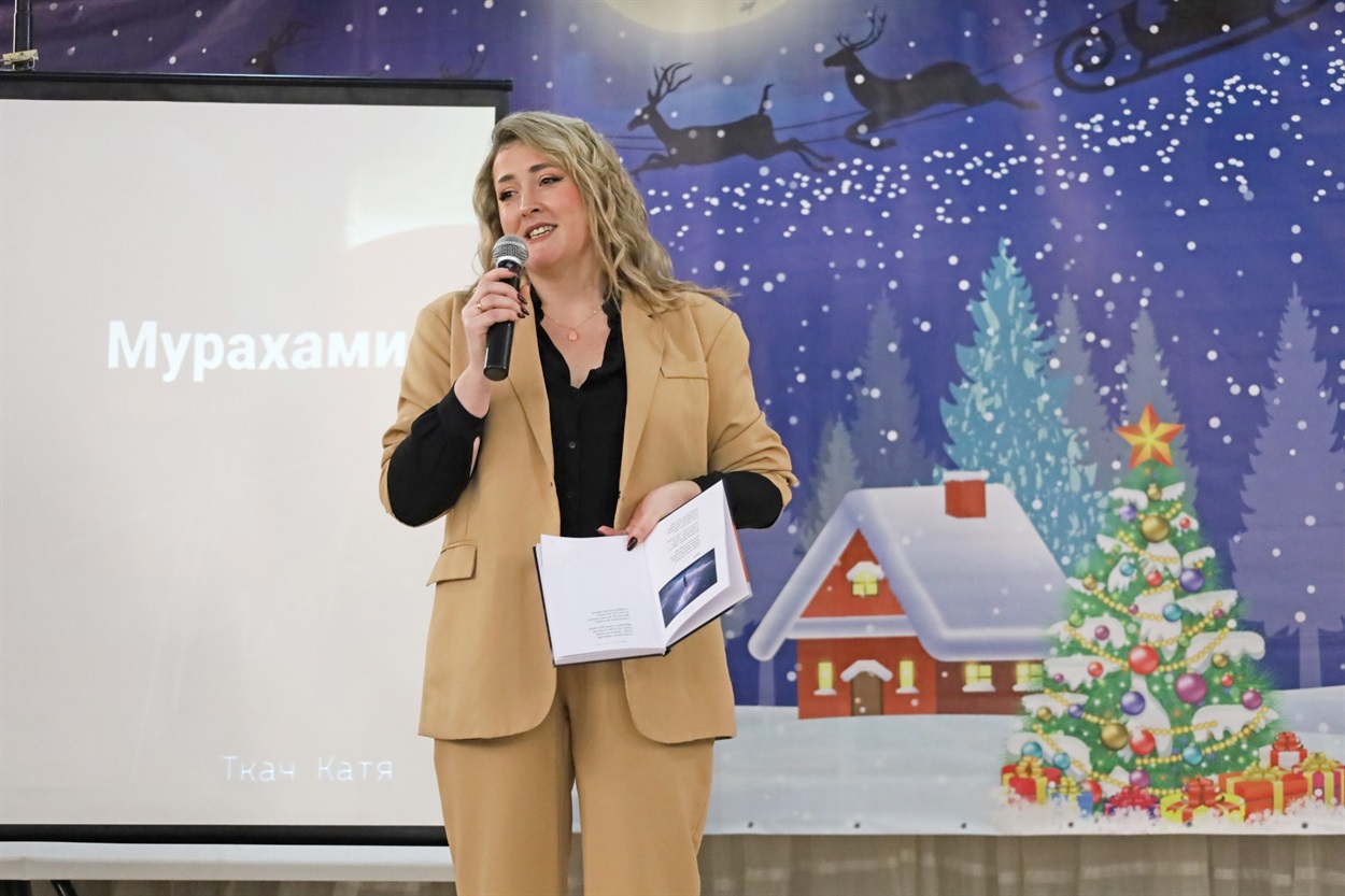 Начальниця управління освіти Аліна Твердохліб подякувала авторці за глибоку поезію та зачитала один із улюблених віршів зі збірки – «Скільки в жінці існує світів?».