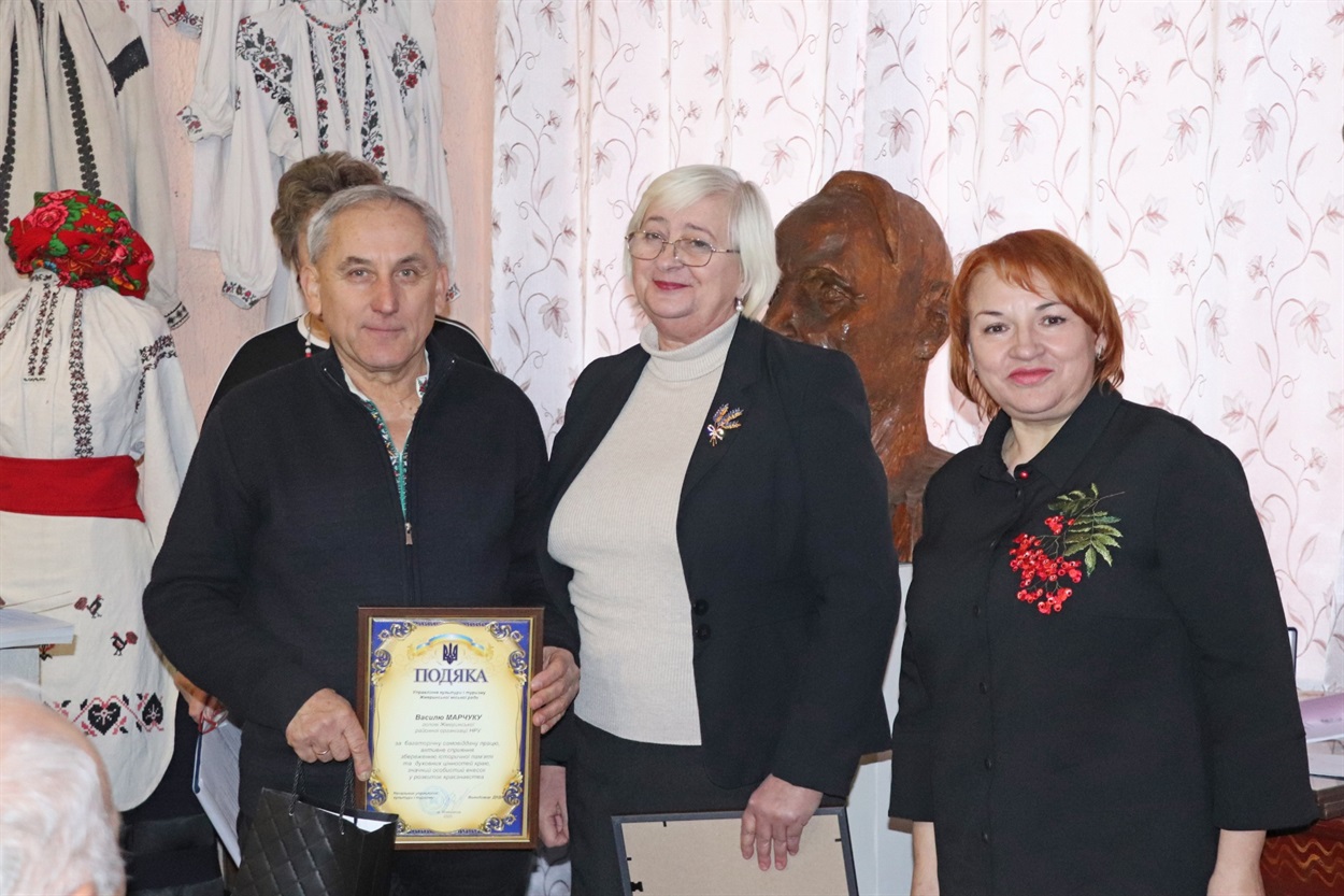 Фахівці управління культури і туризму Жмеринської міської ради Людмила Кретова та Ірина Попік подякували усім, хто зберігає пам’ять про видатного земляка і вручили подяки.