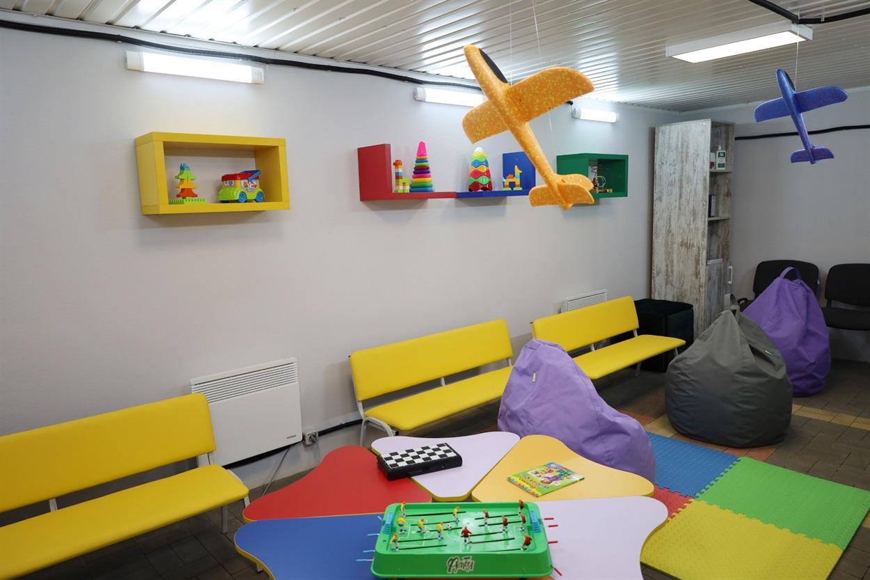 В укритті облаштовано опалення, працює система вентиляції та рекуперації повітря. Є зручні меблі, пуфи, диванчики, столики, а також набори іграшок і книг.