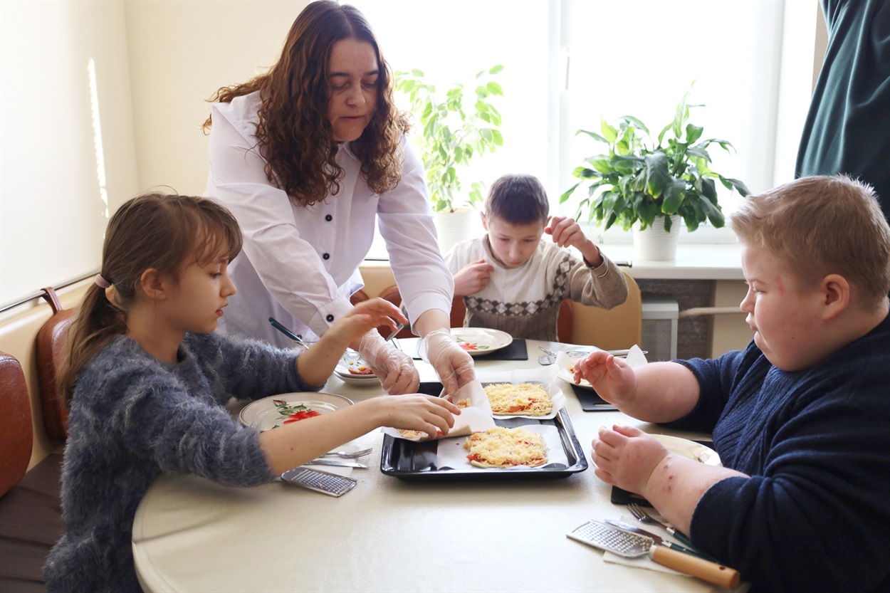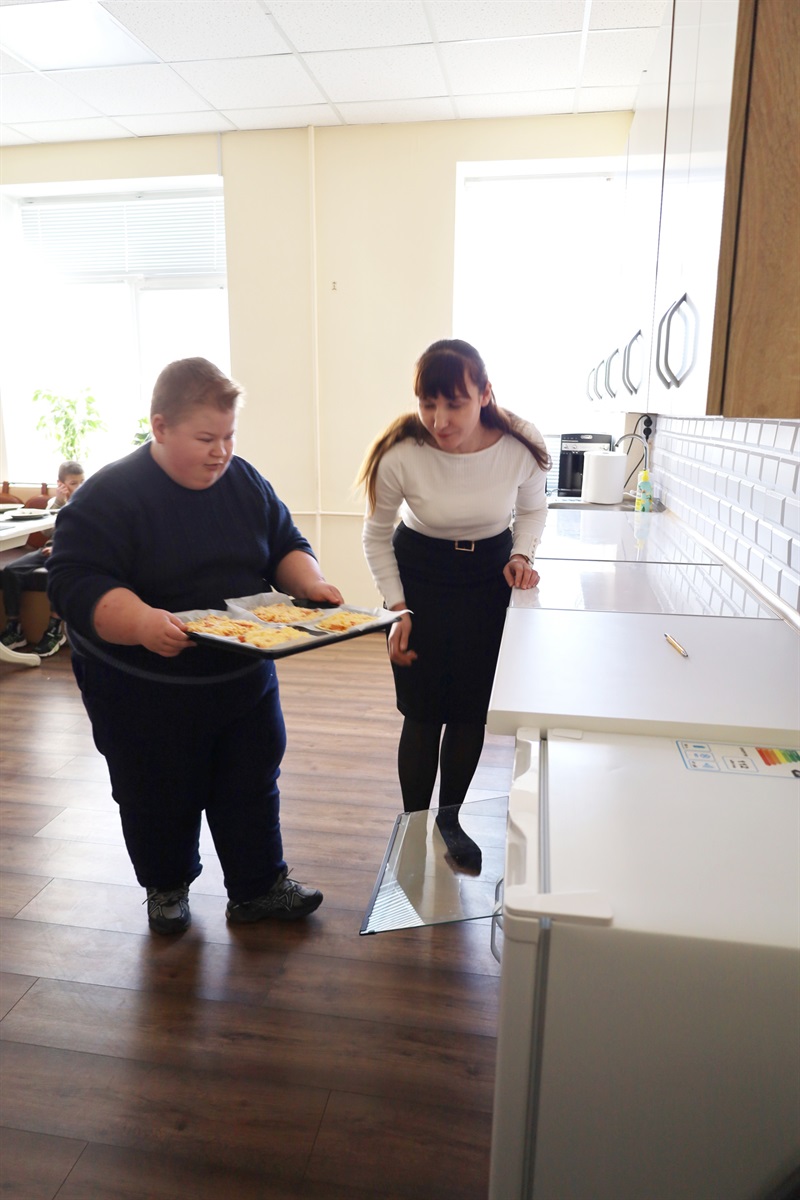 Особливе зацікавлення викликало заняття у дефектолога, де дітки з допомогою фахівця опановували приготування піци, поєднуючи розвиток навичок із побутовою практикою.