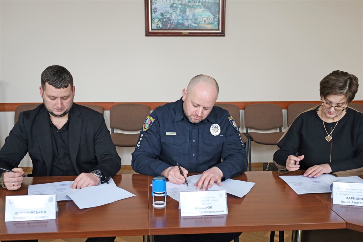 Документ скріпили підписами в.о. Жмеринського міського голови Вадим Кожуховський, заступник начальника Головного управління Національної поліції у Вінницькій області Володимир Олексюк та директорка Територіального медичного об’єднання Міністерства внутрішніх справ України у Вінницькій області Ірина Даришина.
