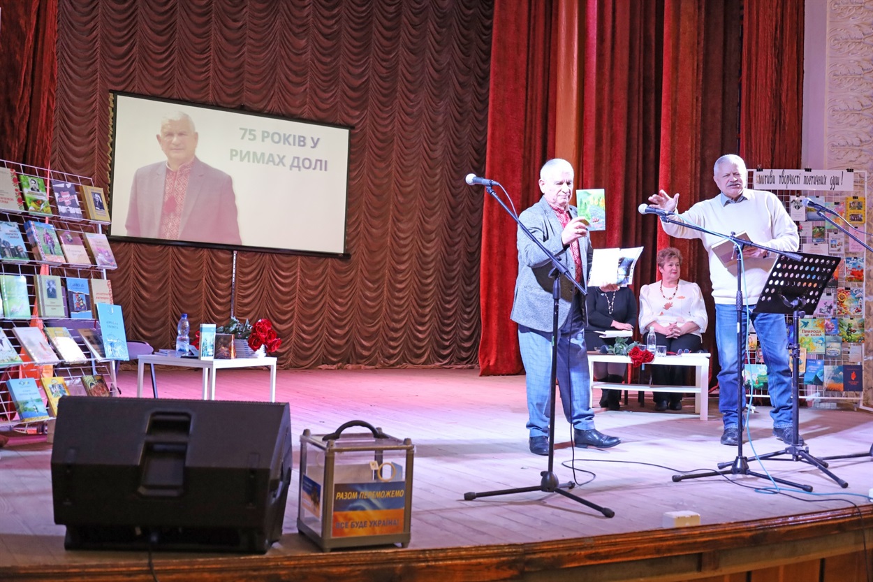 28 січня в Центрі культури і дозвілля відбувся літературно-мистецький захід «75 років у римах долі». Зала дихала теплом: лунали пісні, поезії, щирі зізнання вдячності. Ювілярові дарували картини з портретами, нові книги, музичні присвяти.