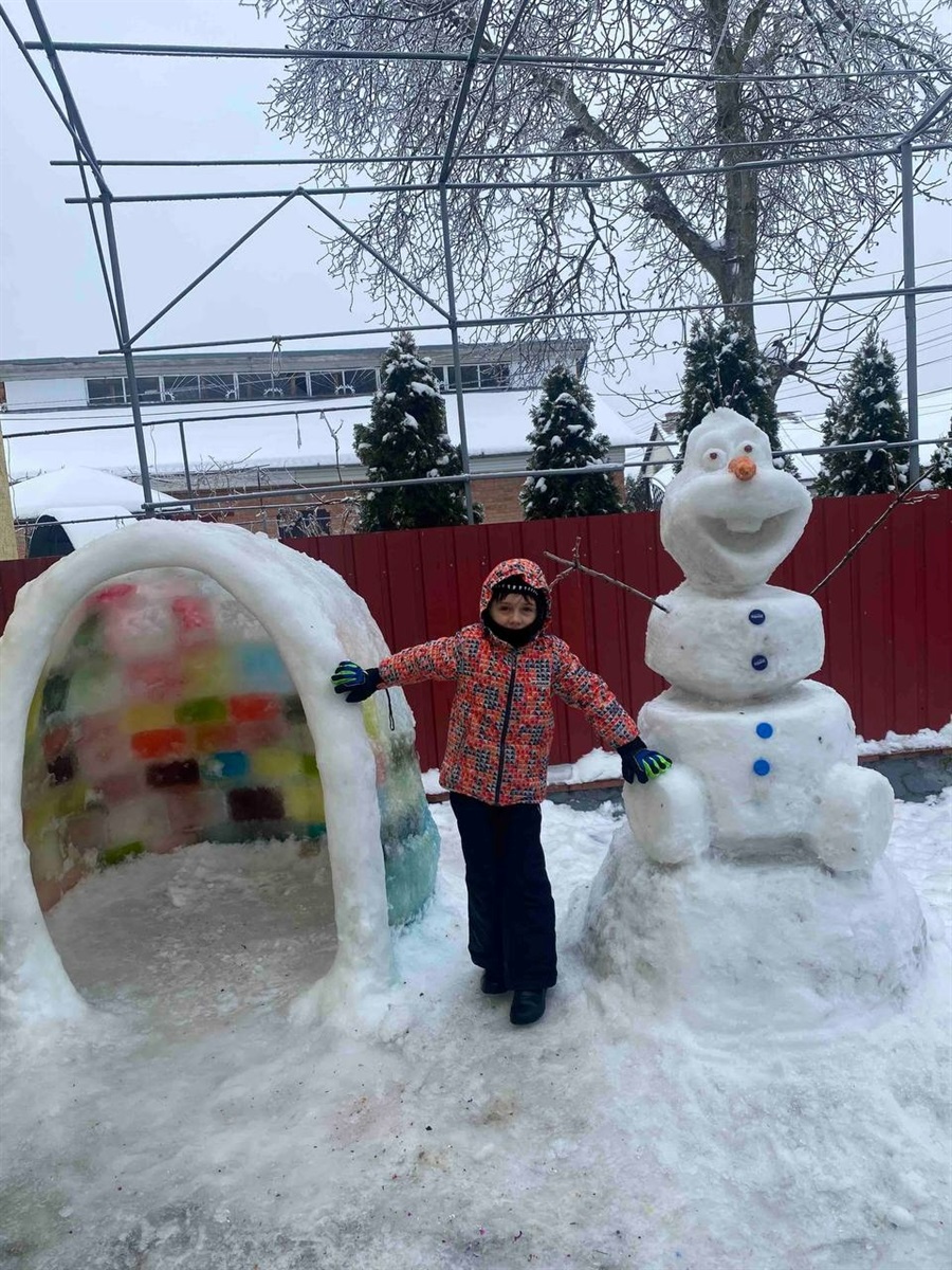 Перше місце виборов шестирічний Нікітка, який разом із татом Олегом і мамою Іриною створив зі снігу улюбленця дітей – Олофа з мультфільму «Крижане серце», а також збудував справжню іглу з кольорових льодяних цеглинок. На роботу родина витратила цілий тиждень, зате результат і нині тішить усіх довкола. А ще разом із дідусем Григорієм хлопчик зліпив найвищого сніговика конкурсу – заввишки 2,8 метра.