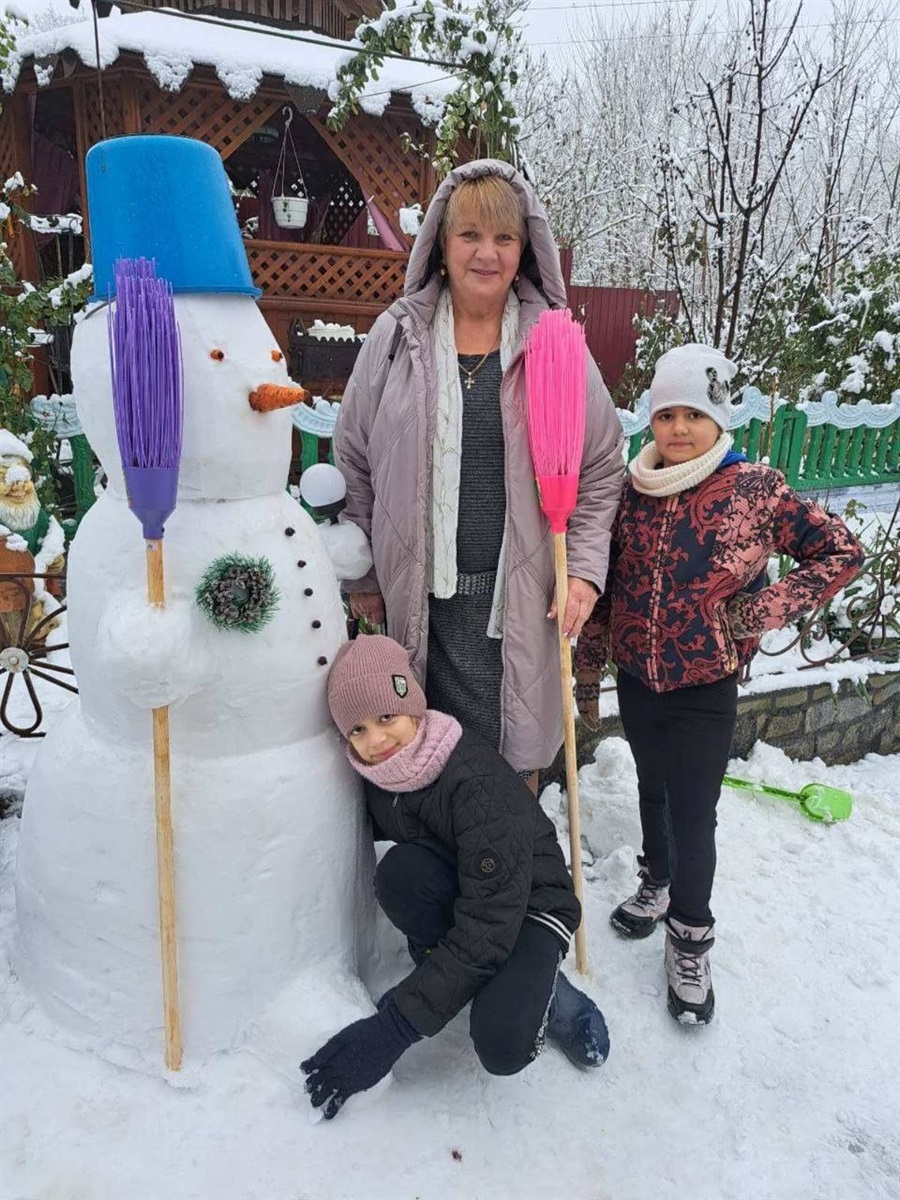 Третє місце розділили сестрички Каріна та Ангеліна разом із бабусею Галиною Антонівною. Вони зліпили велетенського сніговика з ідеально гладеньким покриттям. «Наш сніговик, як і бабуся, любить чистоту й порядок, тому в нього дві мітли та ліхтарик у руках», – усміхаються дівчатка.