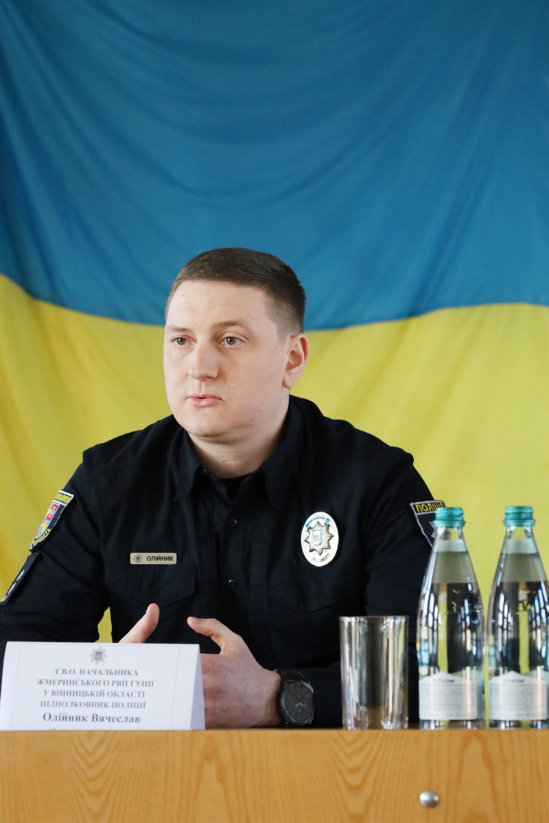 12 березня у Жмеринському районному відділі поліції представили нового керівника. Тимчасово виконуючим обов’язки начальника територіального підрозділу призначено підполковника поліції Вячеслава Олійника. Його особовому складу представив заступник начальника Головного управління Національної поліції у Вінницькій області Володимир Олексюк.