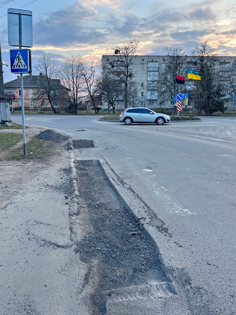 Сьогодні на всіх ділянках, де є потреба, здійснюють вирізання частин асфальту спеціальним транспортом – дорожньою фрезою. Пошкоджений шар зрізають, забезпечуючи рівні краї та необхідну глибину для укладання нового асфальту, що підвищує якість ремонту. Роботи виконує місцева фірма ПП «ГЛАВВ-ДОР».