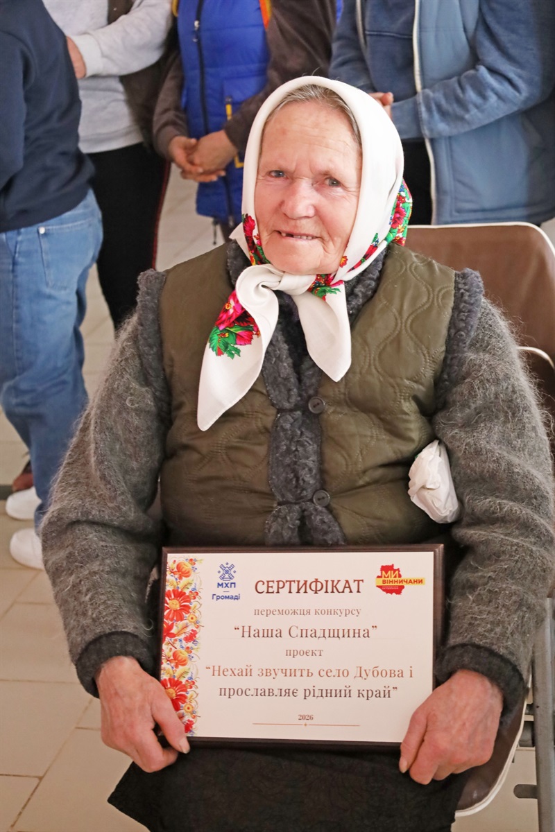 Саме така щира любов до рідного стала запорукою перемоги: нещодавно проєкт «Нехай звучить село Дубова і прославляє рідний край» здобув перше місце у конкурсі «Наша спадщина», який реалізують компанія МХП та громадська організація «Ми – вінничани».