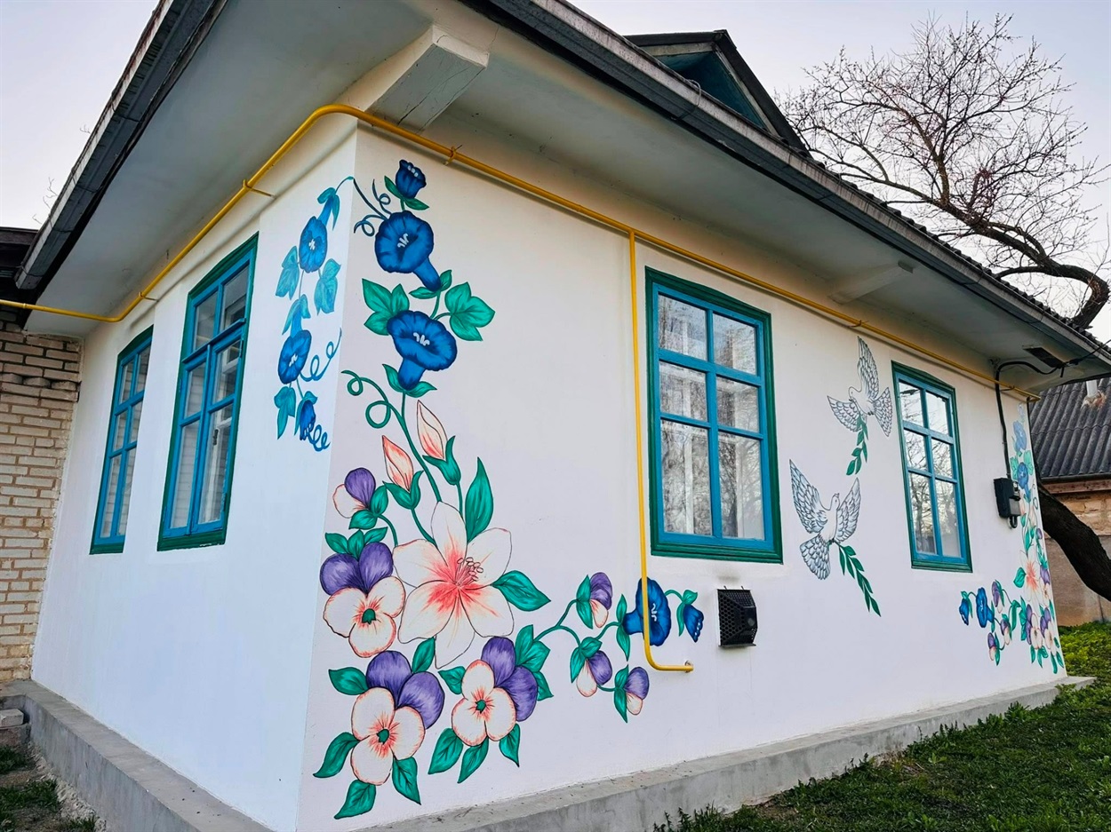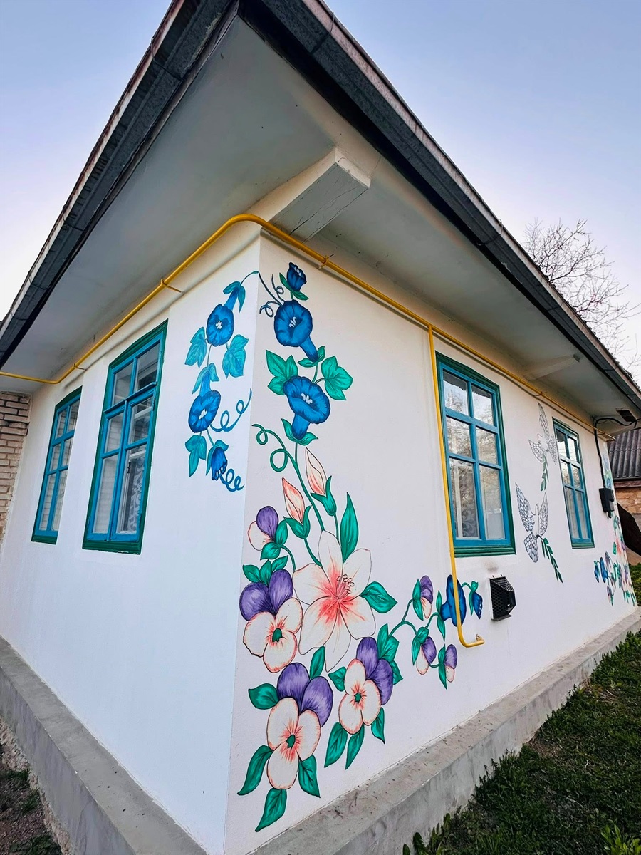 На фото хатина в селі Дубова Жмеринської громади. Такий розпис створила місцева господиня, художниця, вчитель початкових класів Кармалюківського ліцею Майя Шелінговська.