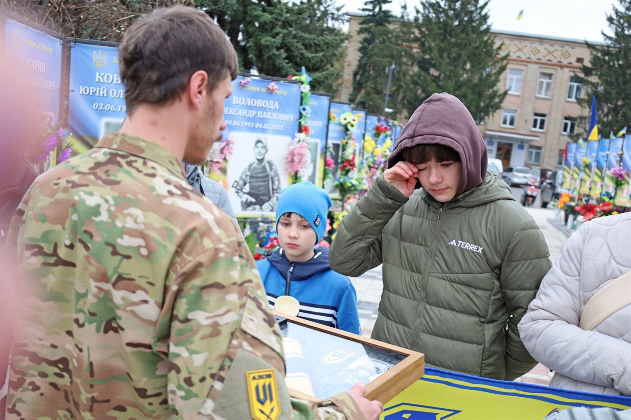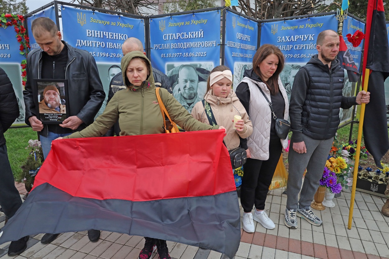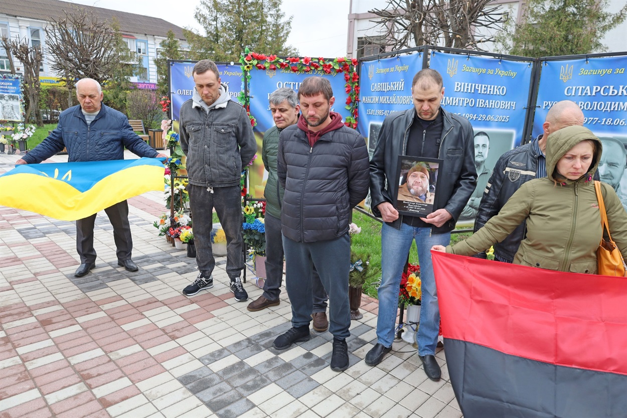 До Жмеринки приїхали побратими-азовці. Разом із родиною вони помолилися, виконали Державний Гімн України та вшанували всіх полеглих хвилиною мовчання.