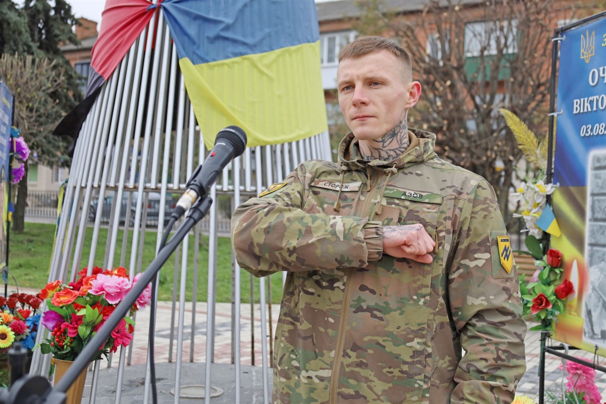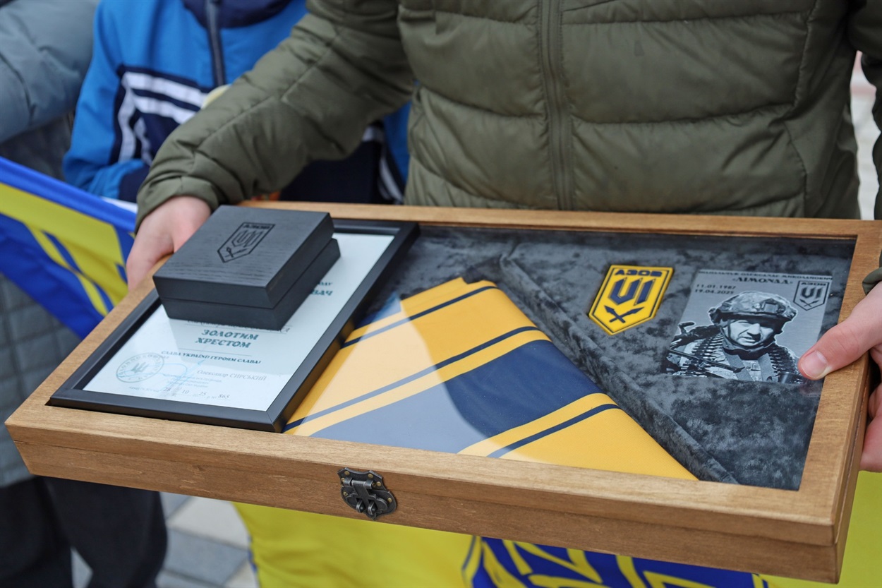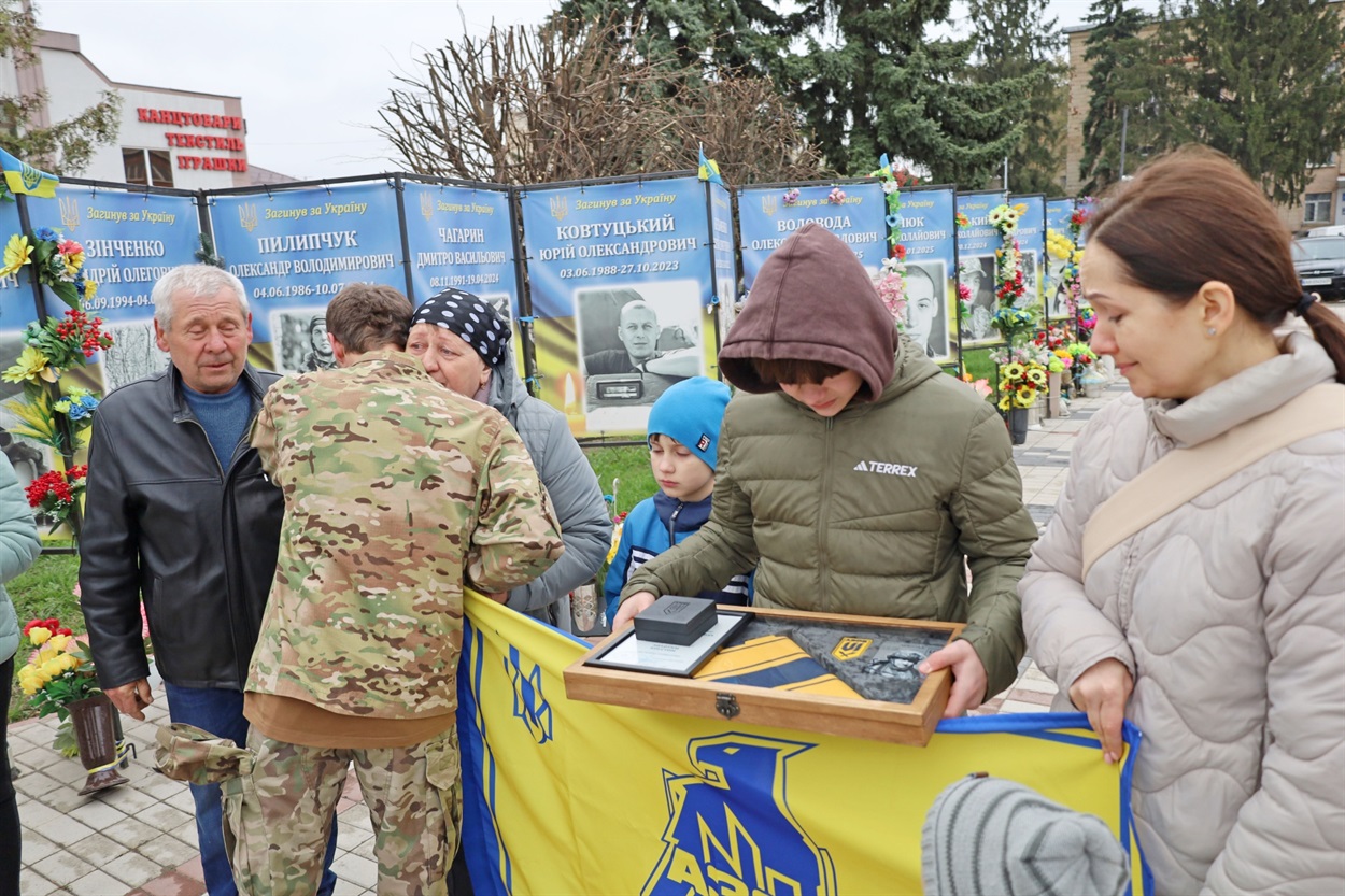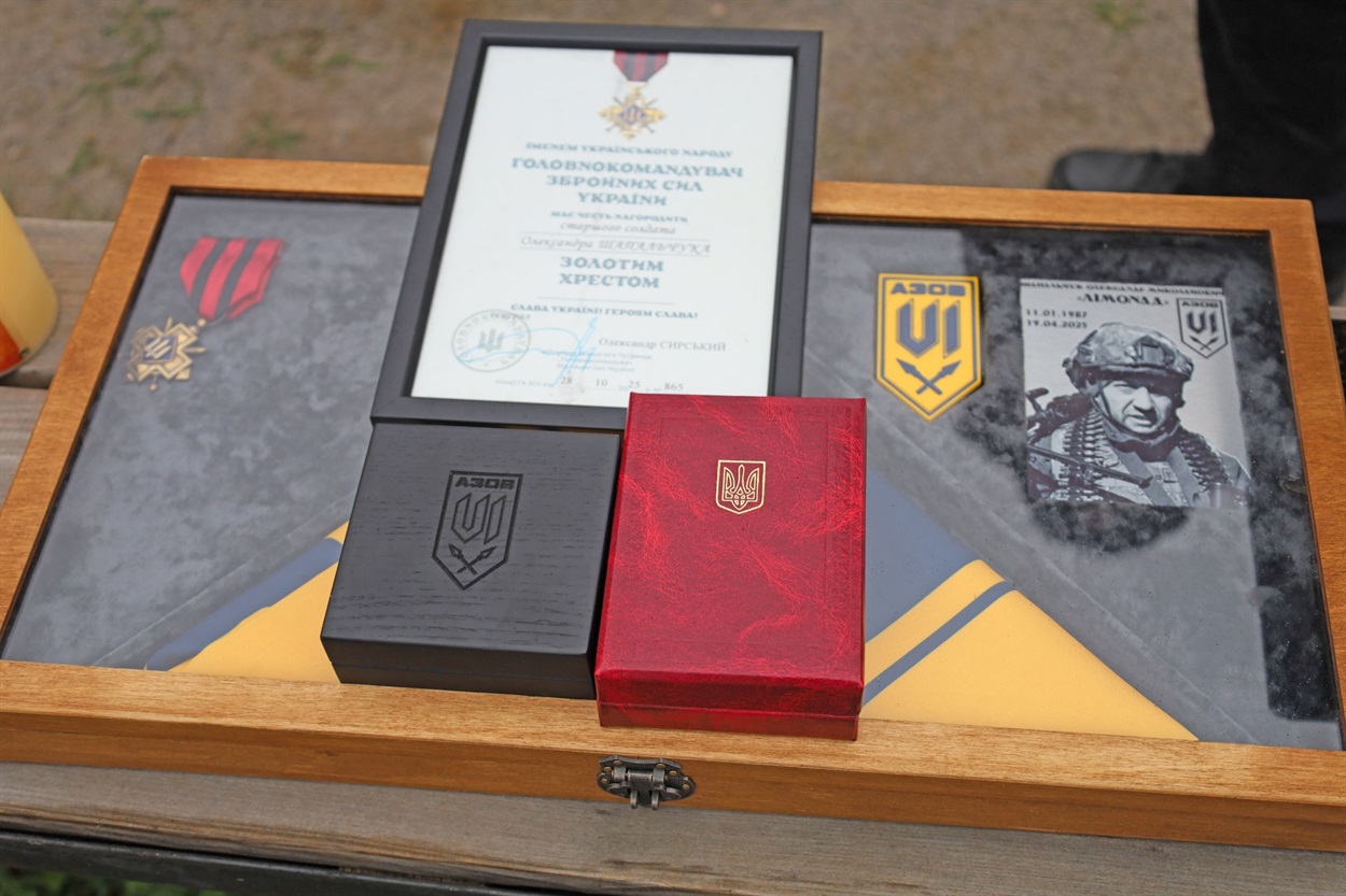 Під час заходу синові Героя Максиму вручили державну нагороду – відзнаку «Золотий Хрест» від імені Головнокомандувача України, а також Бойовий прапор «Азову», пам’ятну монету і викарбуваний на сталі портрет батька з позивним.