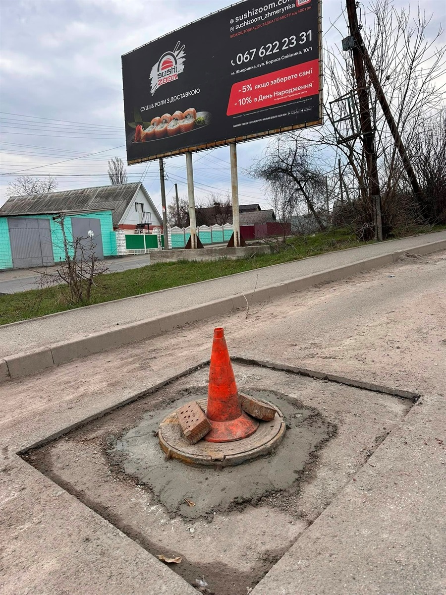 У Жмеринці замінюють аварійні люки та підіймають кришки люків на дорогах до рівня дорожнього покриття. Роботи на замовлення управління ЖКГ Жмеринської міської ради виконує місцева фірма ФОП Погосян В.Г.