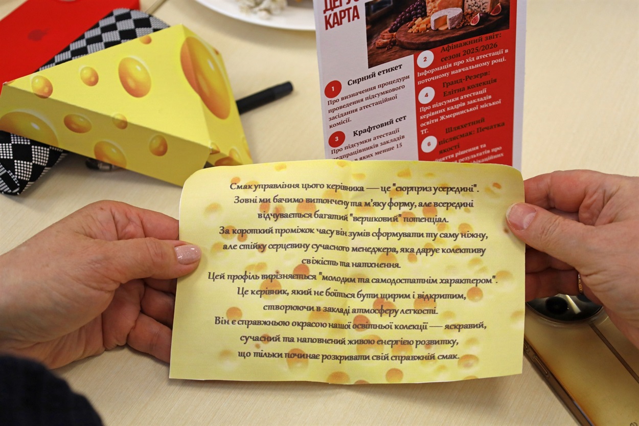 У Жмеринській громаді відбулась атестація керівників закладів освіти «Освітній афінаж. Експертиза якості-2026». Досвід педагогів розглянули крізь призму справжньої майстерності, відданості та любові, а вчителів символічно порівняли з алхіміками, які щодня перетворюють знання, досвід і натхнення на найцінніший результат – успішних, свідомих і щасливих учнів.