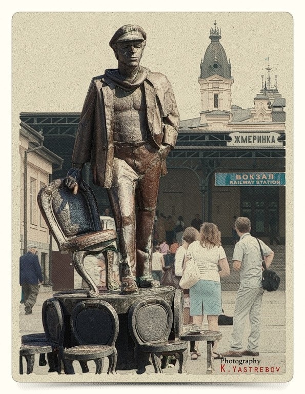 Факт 5. На привокзальній площі до 2012 р. стояв пам’ятник Остапу Бендеру – герою сатиричних романів Ільфа і Петрова, у яких Жмеринка згадується як «Последний настоящий город на земле».