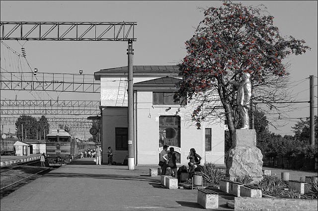 Факт 6. Ленін більше не стоїть. Під час масової декомунізації по всій країні після Революції Гідності на 4 платформі вокзалу у 2014 році пам’ятник вождю світового пролетаріату зруйновано, а погруддя Ілліча змінив бюст Першого Президента «Укрзалізниці» Бориса Олійника біля Дирекції залізничних перевезень.